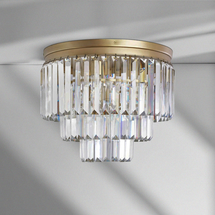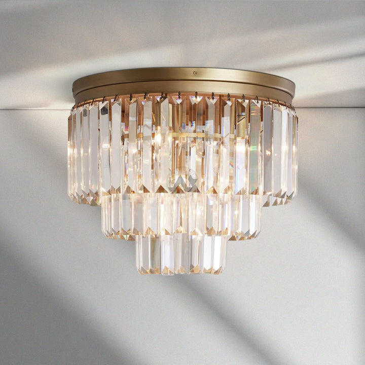 French Art Deco style of the 1920s is reborn in our glamorous Leyland Lighting Collection, featuring layered row upon row of faceted glass crystals from a rustic iron frame.