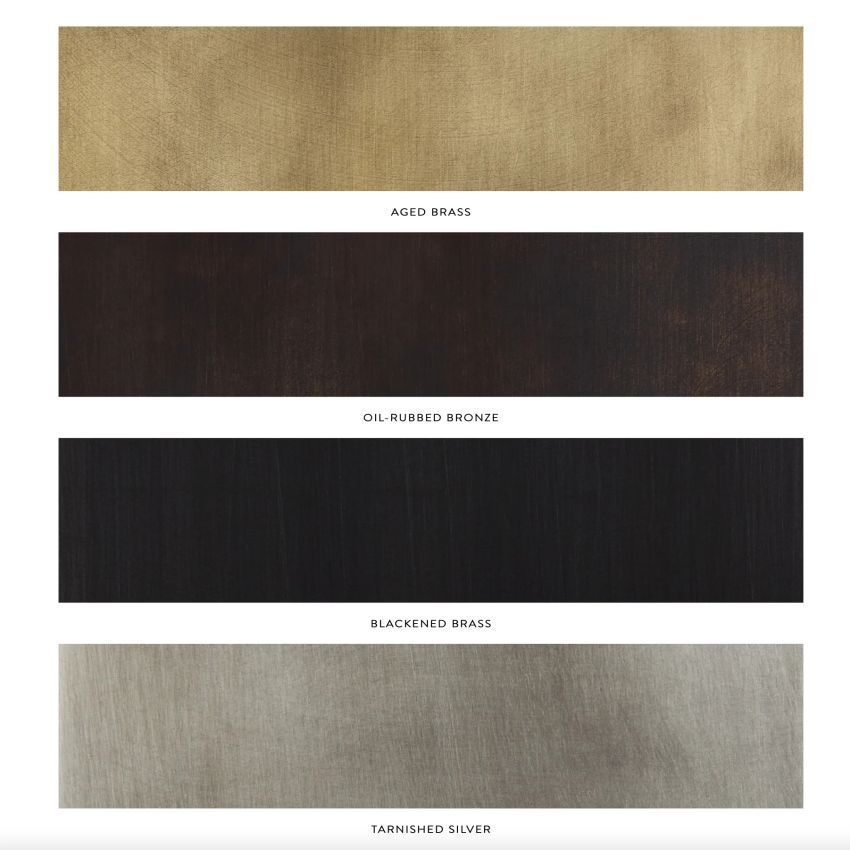 Finish: aged brass, oil rubbed bronze, blackened brass and tarnished silver