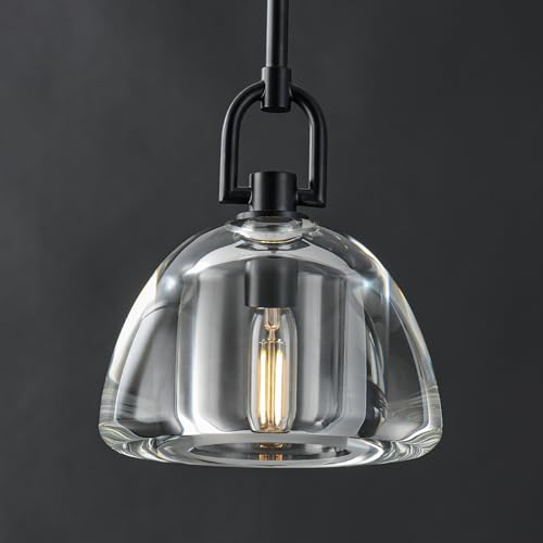 A sleek black glass pendant that adds a splash of modern elegance to any kitchen island or dining area. Its ultra‑lightweight yet sturdy brass frame holds a thick K9 crystal shade that diffuses a warm 2700K glow. Adjustable rod lengths up to 72 inches let you tailor the height for perfect ambience. Easy installation and a included E12 bulb make it ready to shine right out of the box.