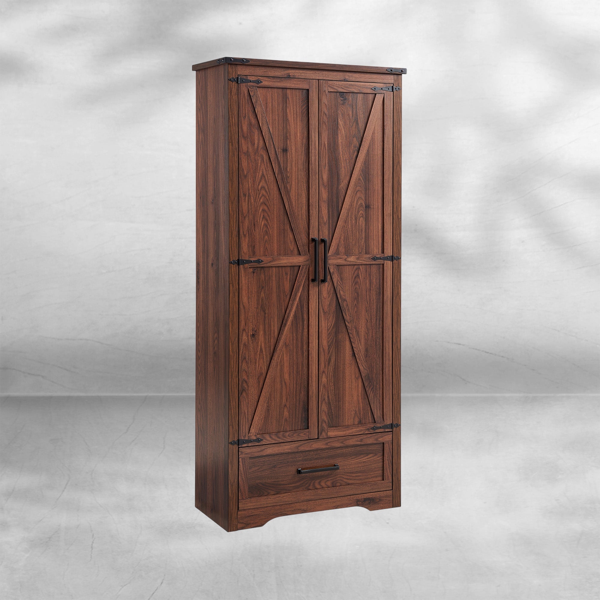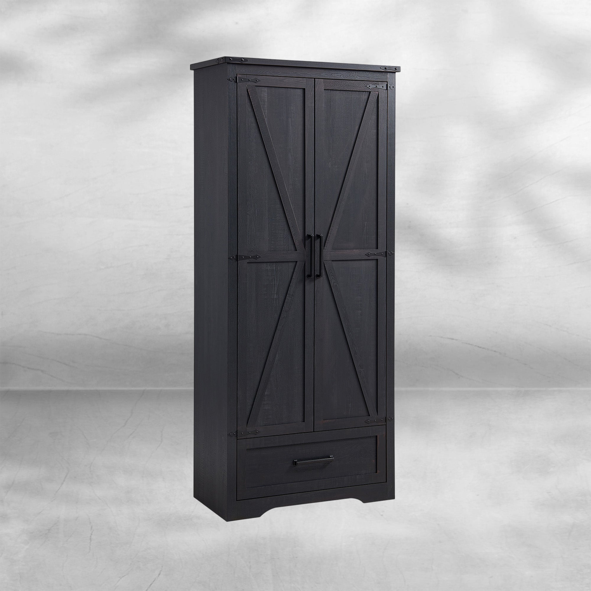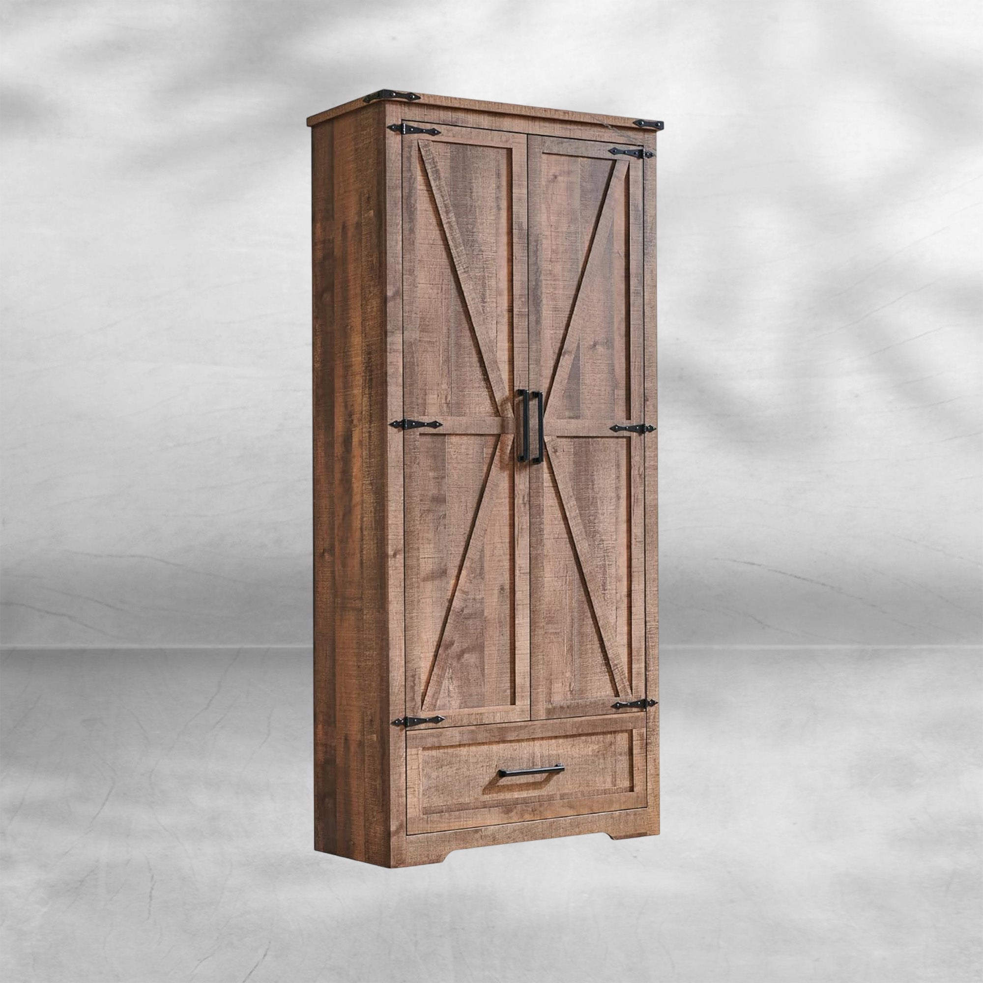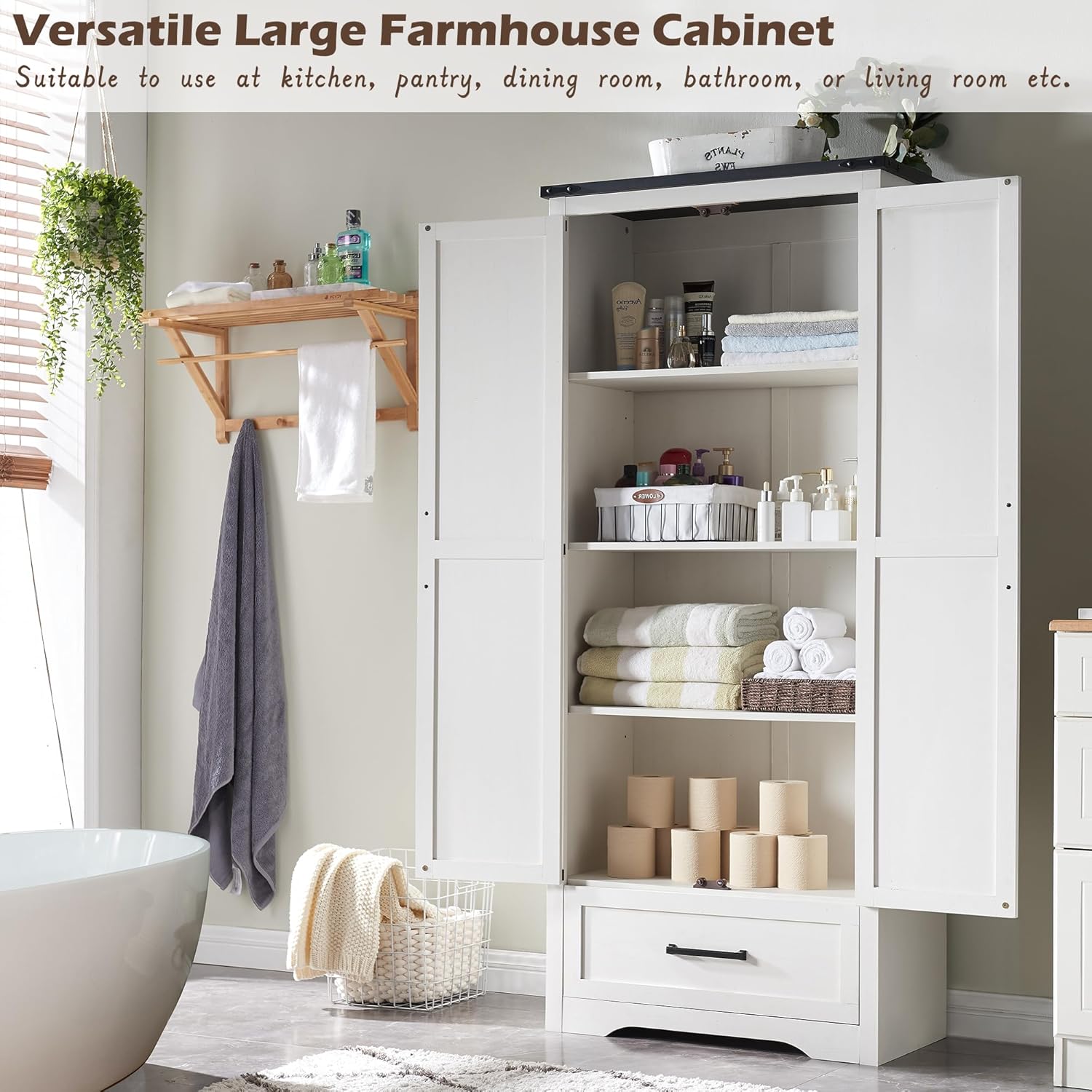 72" Farmhouse Kitchen Pantry Cabinet with Adjustable Shelves and Barn Doors