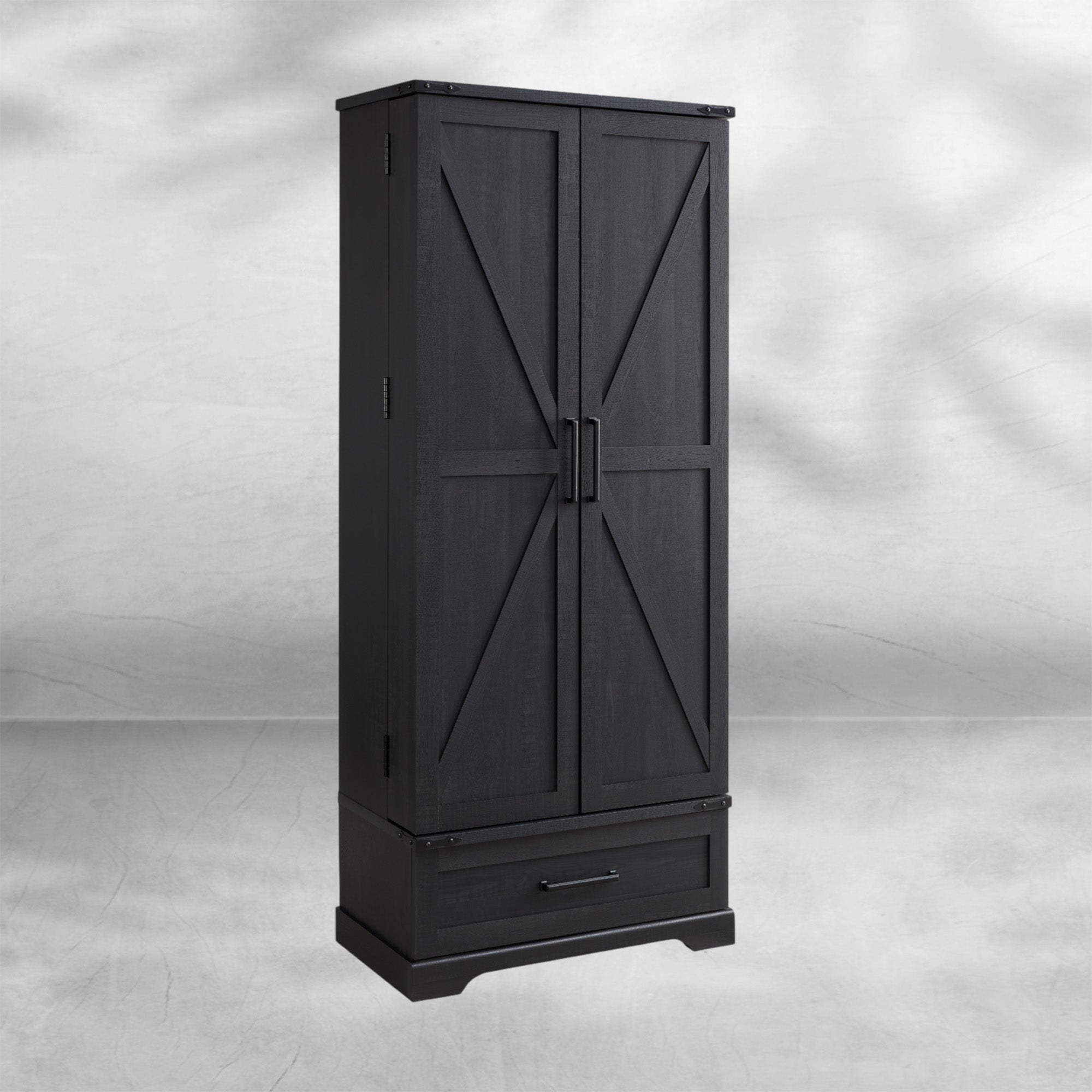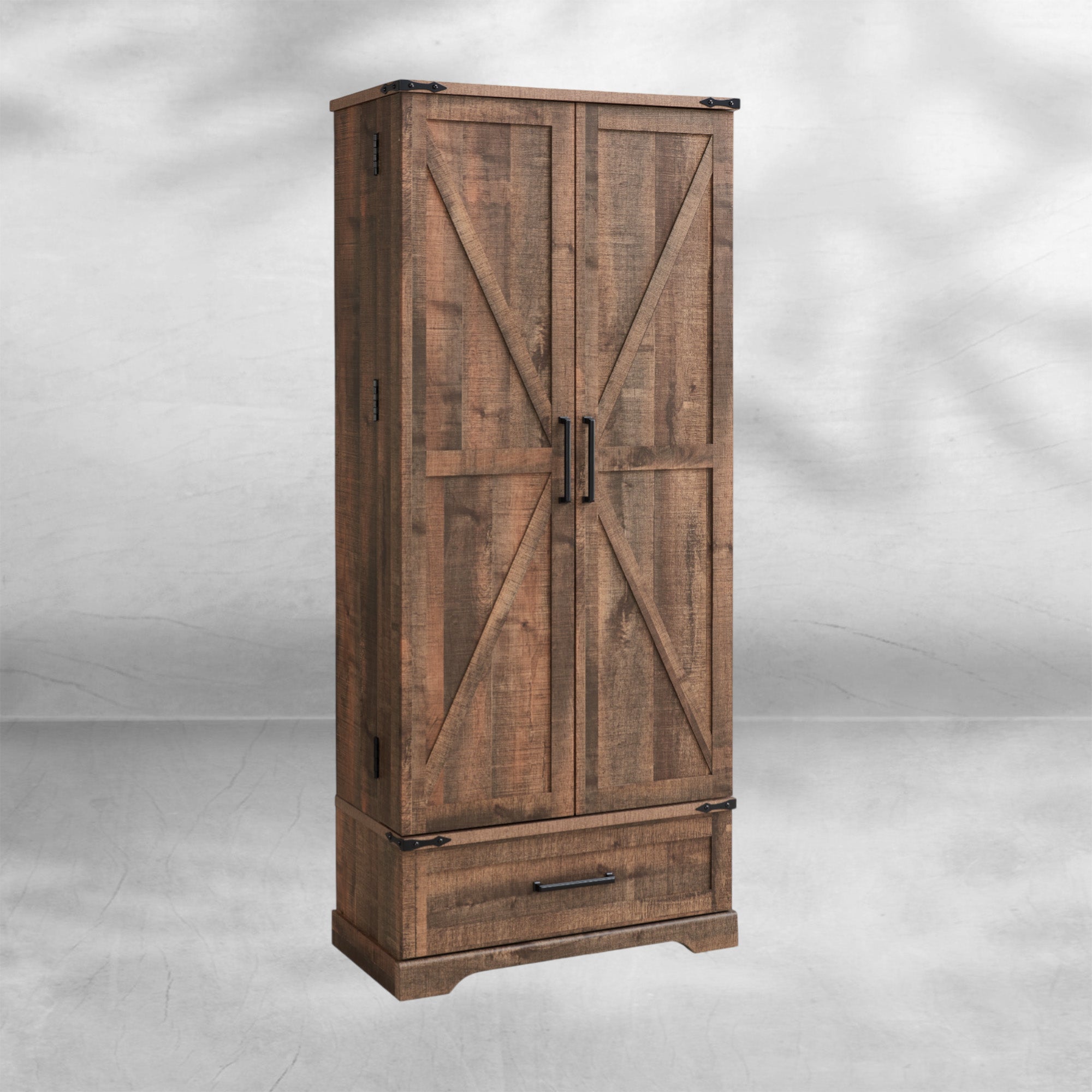 72" Farmhouse Kitchen Pantry Cabinet with Drawer, Barn Door Design