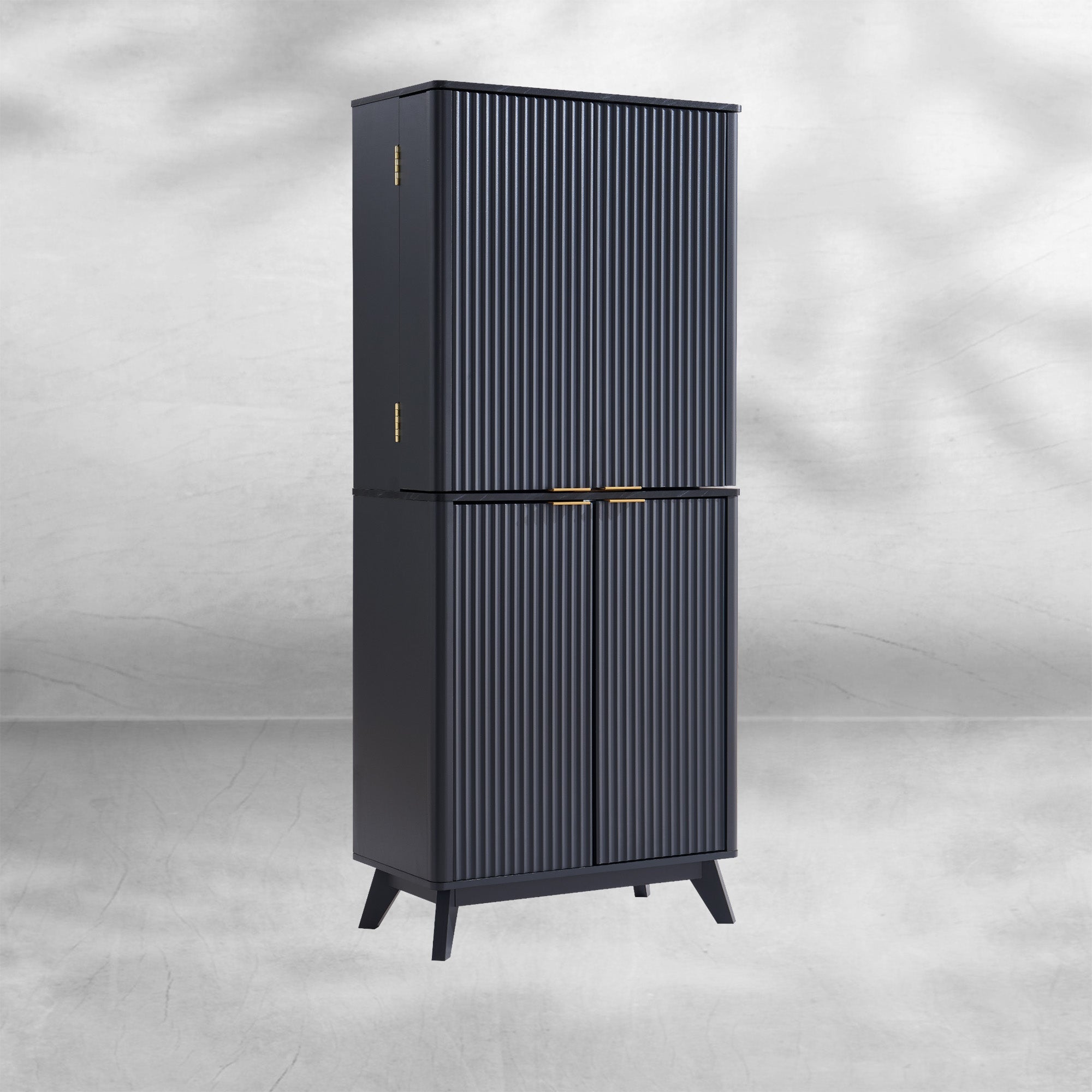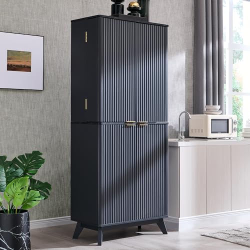 Elevate your kitchen or living space with this stylish, dark grey pantry. This 72-inch tall cabinet features a distinctive fluted design, blending mid-century modern aesthetics with practical storage solutions. Adjustable shelves and a convenient door organizer provide customizable space for all your essentials. Perfect for keeping your kitchen tidy or adding a touch of elegance to any room.