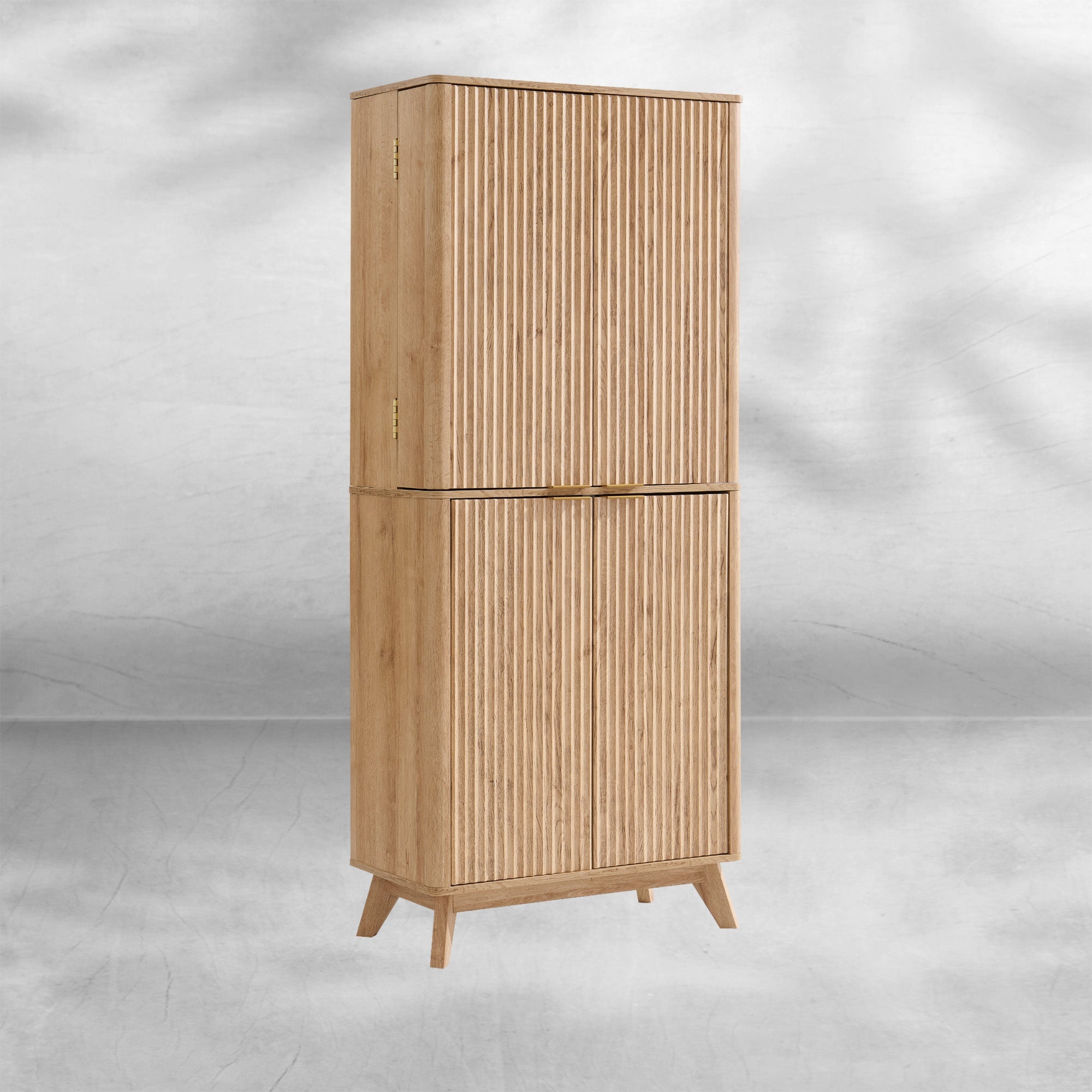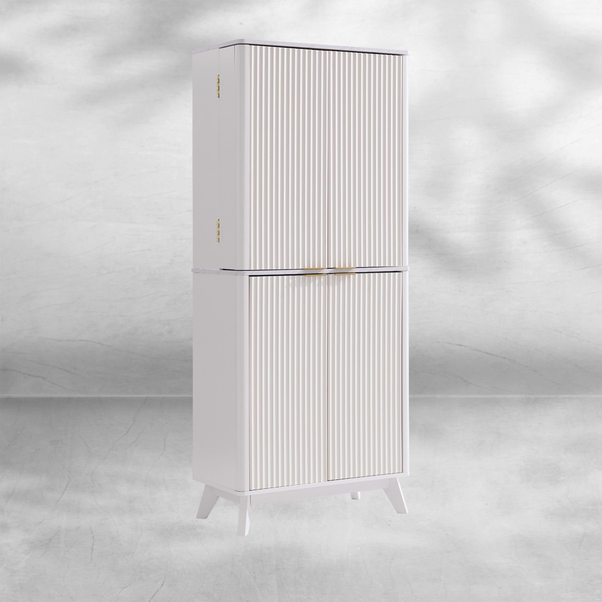 Mid-Century Modern Fluted Kitchen Pantry Cabinet 72"