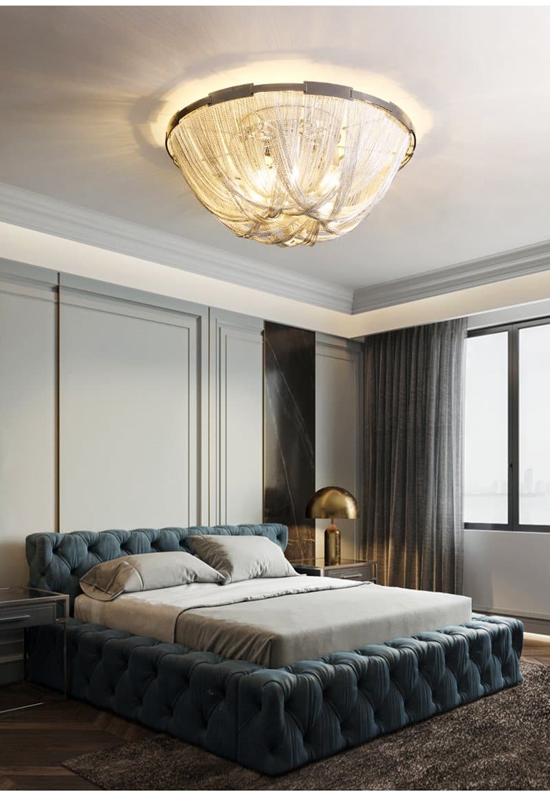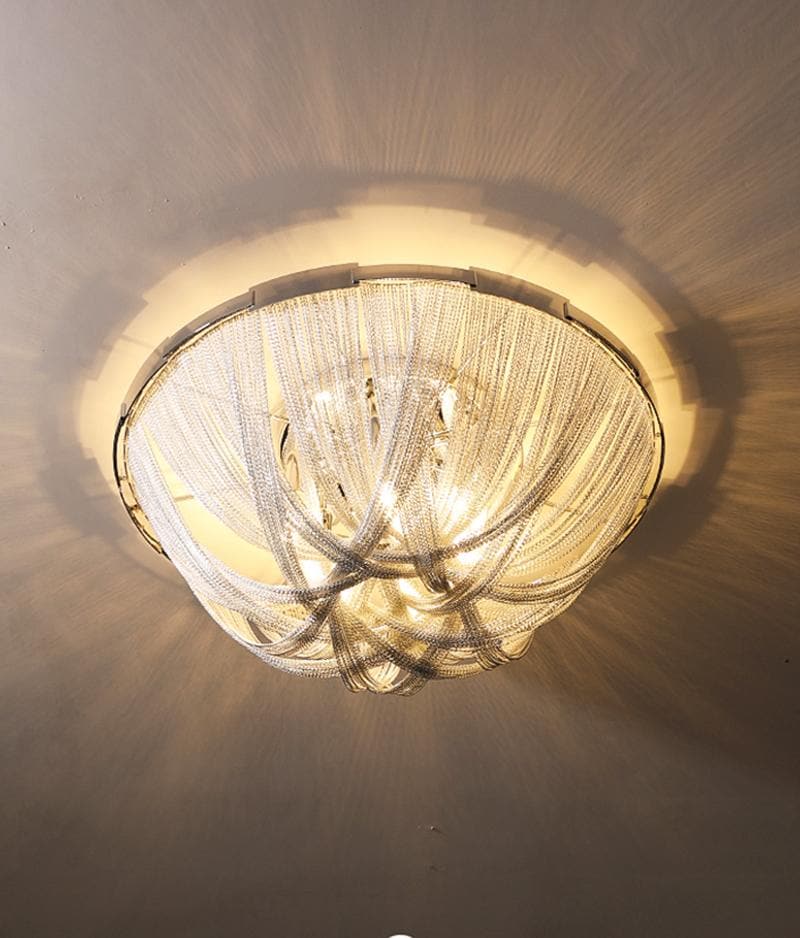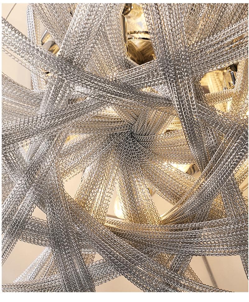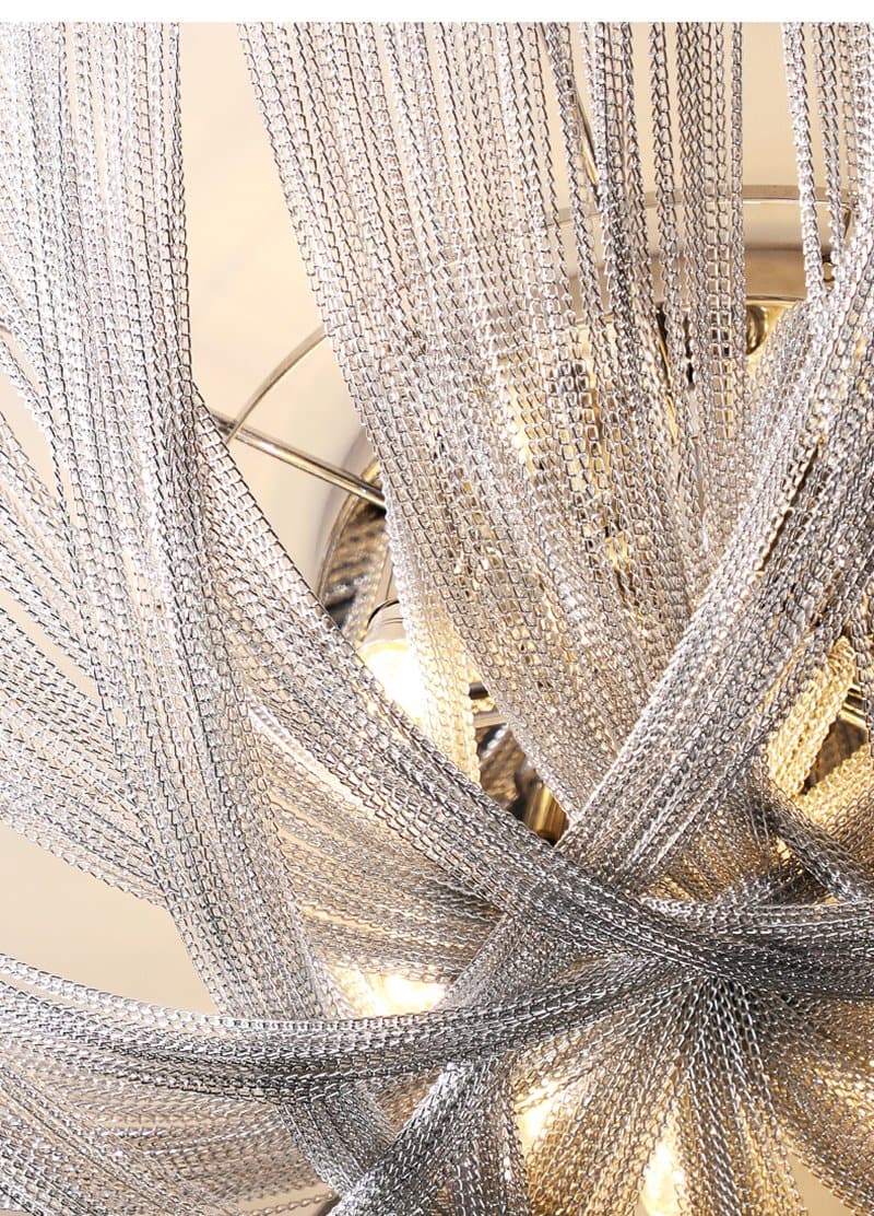 This is a contemporary work of art it is a source of light. this on-trend chandelier makes a statement in any space. Round High-Quality Gold Electroplated Stainless Steel. Exquisite Craftsmanship. Energy Efficient LED Light Source. Hundreds of aluminum chains are suspended asymmetrically from a linear shape frame. casting a refractive glow to dramatic effect. The process of tassel chain presents the perfect combination of handcraft and design. It can stand out in many lighting styles. Out of a classic. vintage industrial style and some modern flair evolved this stunning piece. applies to Home/Hotel/KTV/Villa/Club/Restaurant Decor. You can find the right products for you in Oasislamps online stores. If you can't find it. we can also customize the products you like.