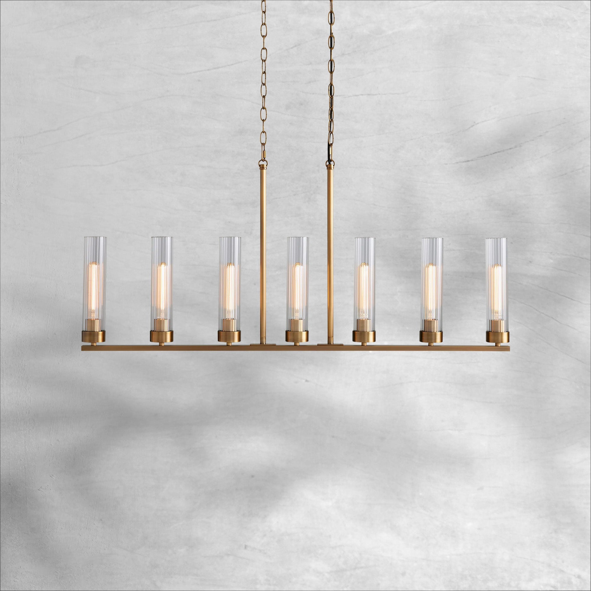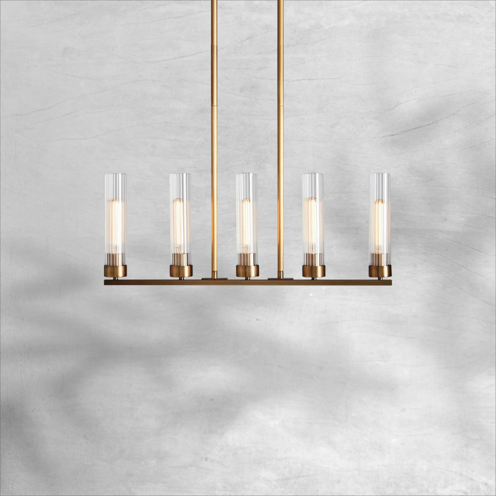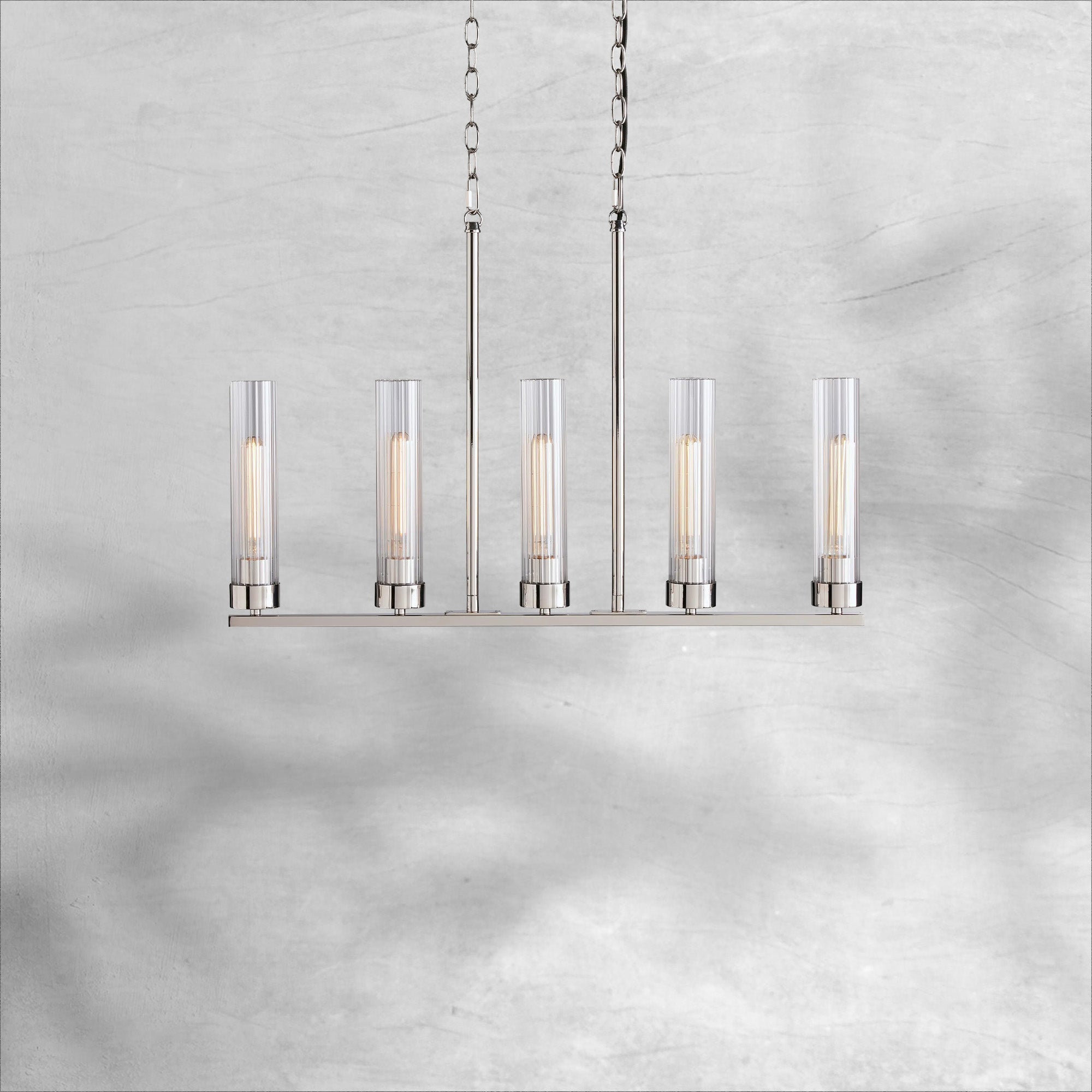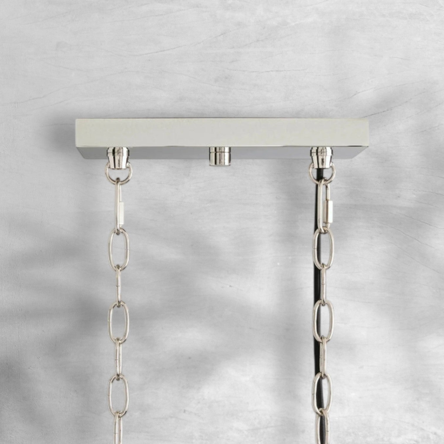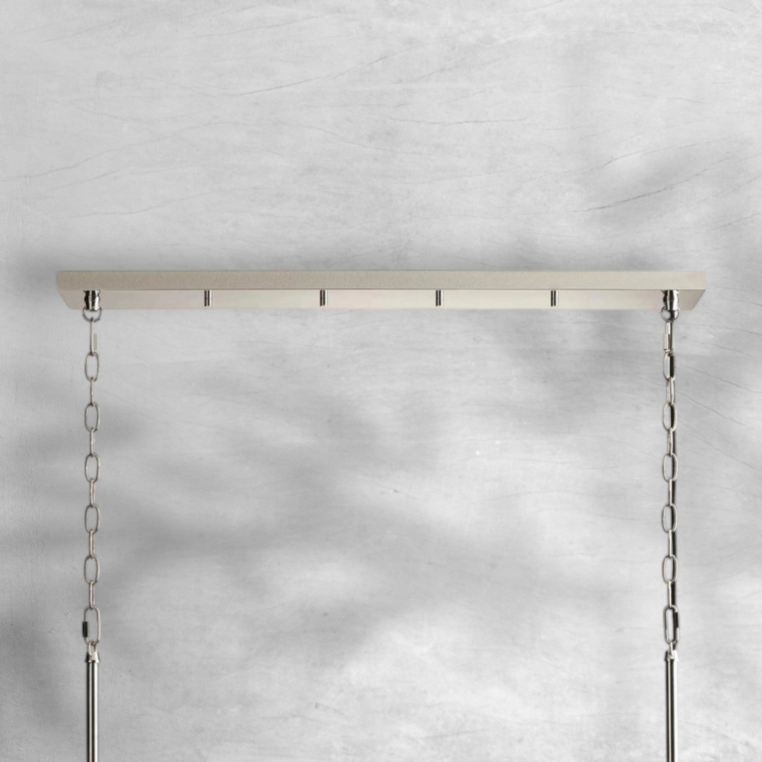 5-Light: 31.5" Width x 4.5" Depth x 12.25" HeightWIDTH 31.5" DEPTH 2.5" HEIGHT 12.25" WEIGHT 13.98 LBS NUMBER OF SOCKETS 5 MAXIMUM HANGING DISTANCE 150.11" CHAIN LENGTH 108" CANOPY DEPTH 4.5" CANOPY WIDTH 10"