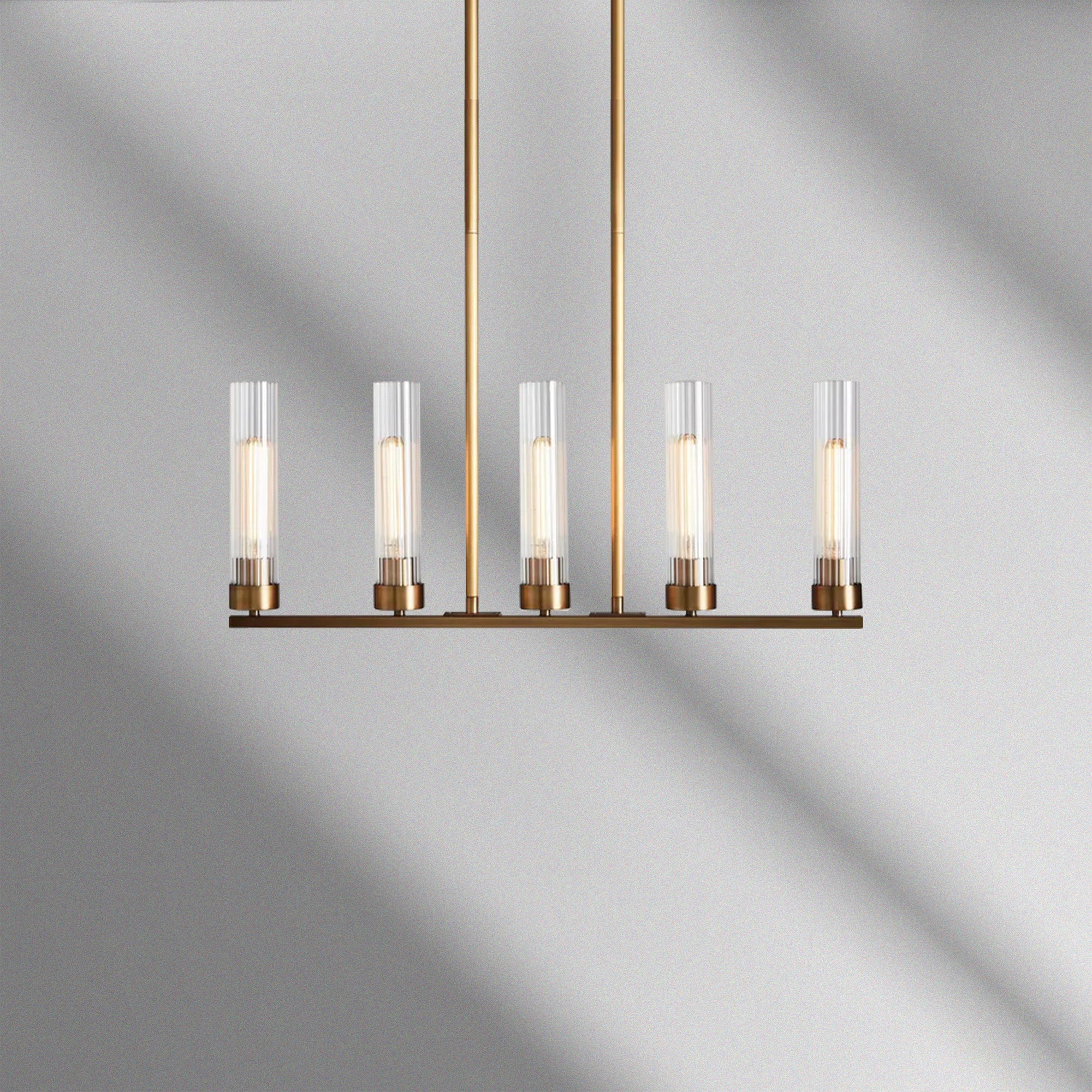 Where vintage styling meets modern aesthetics, our Andreas Lighting Collection truly shines. Featuring a striking linear design and fluted glass shades, this Andreas Chandelier features five points of illumination for a radiant, welcoming effect.Where vintage styling meets modern aesthetics, our Andreas Lighting Collection truly shines.
