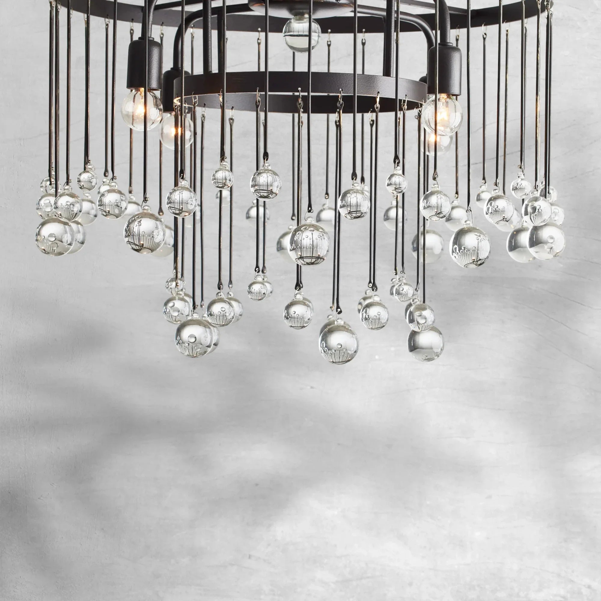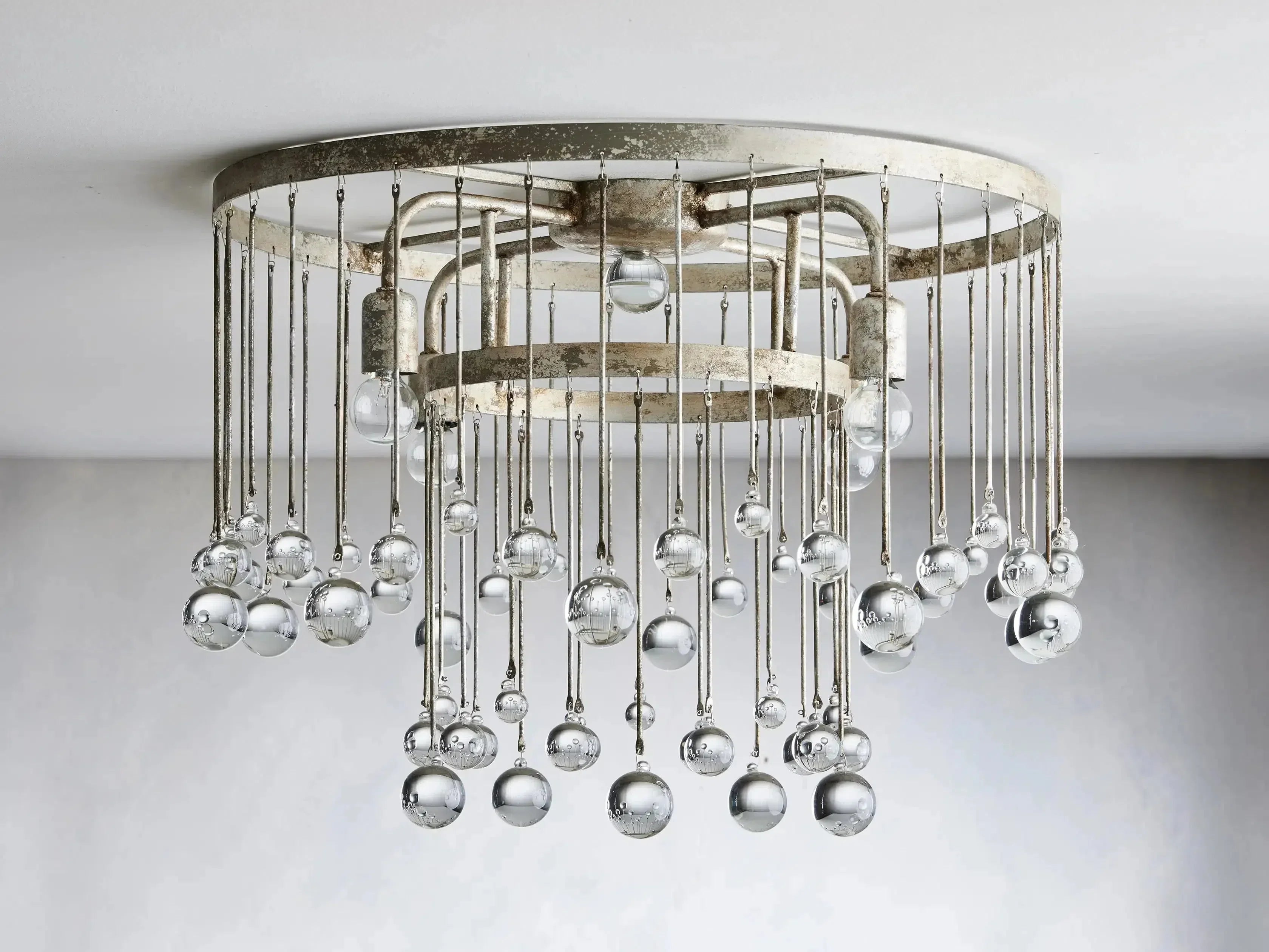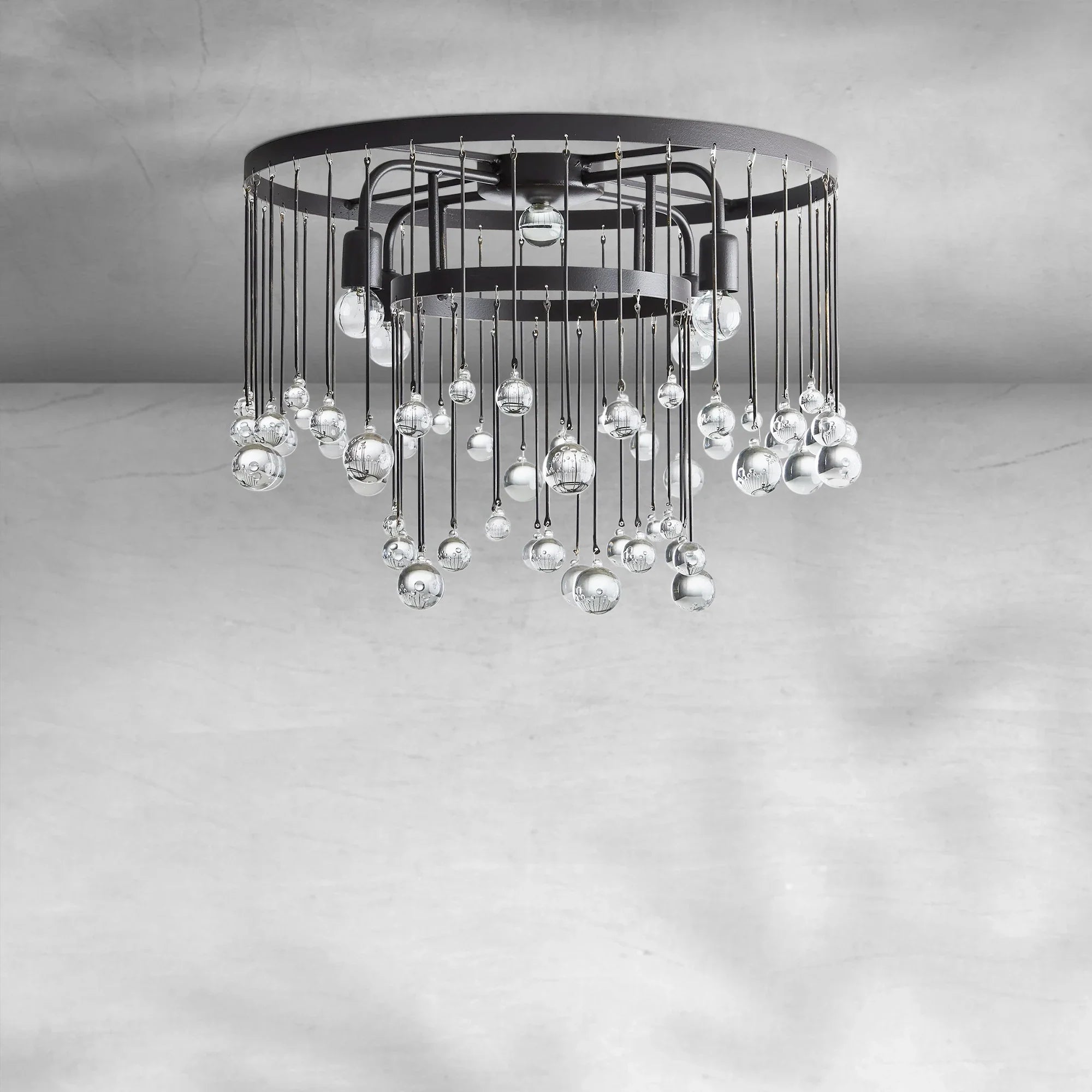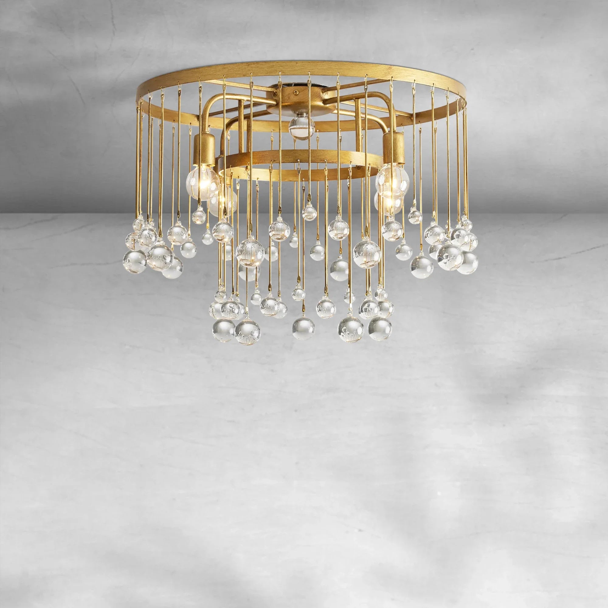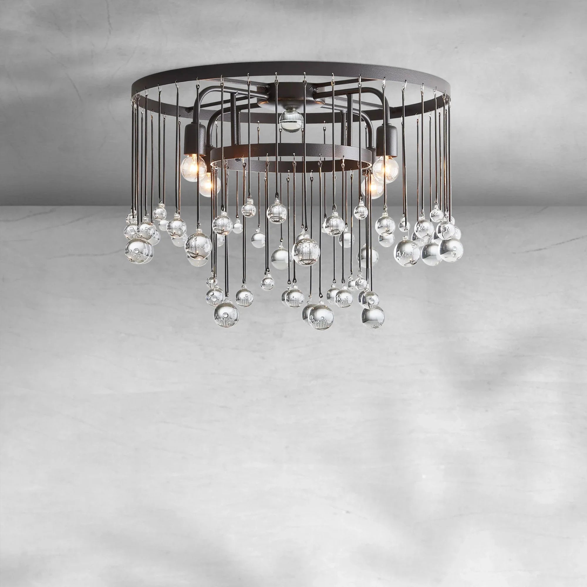 - Equally at home in an ancient French castle or a downtown New Orleans loft, our Aubrey Flushmount creates dramatic ambiance in any setting. Crystal drops hanging in varying lengths from an iron cage create the illusion of movement as they catch the light, refracting brilliant beams around your room.