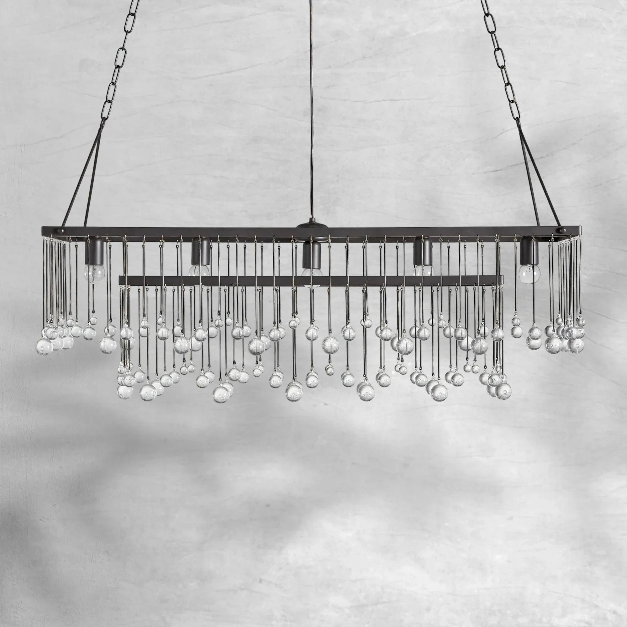 - Equally at home in an ancient French castle or a downtown New Orleans loft, our Aubrey Chandelier creates dramatic ambiance in any setting. Crystal drops hanging in varying lengths from an iron cage create the illusion of movement as they catch the light, refracting brilliant beams around your room.