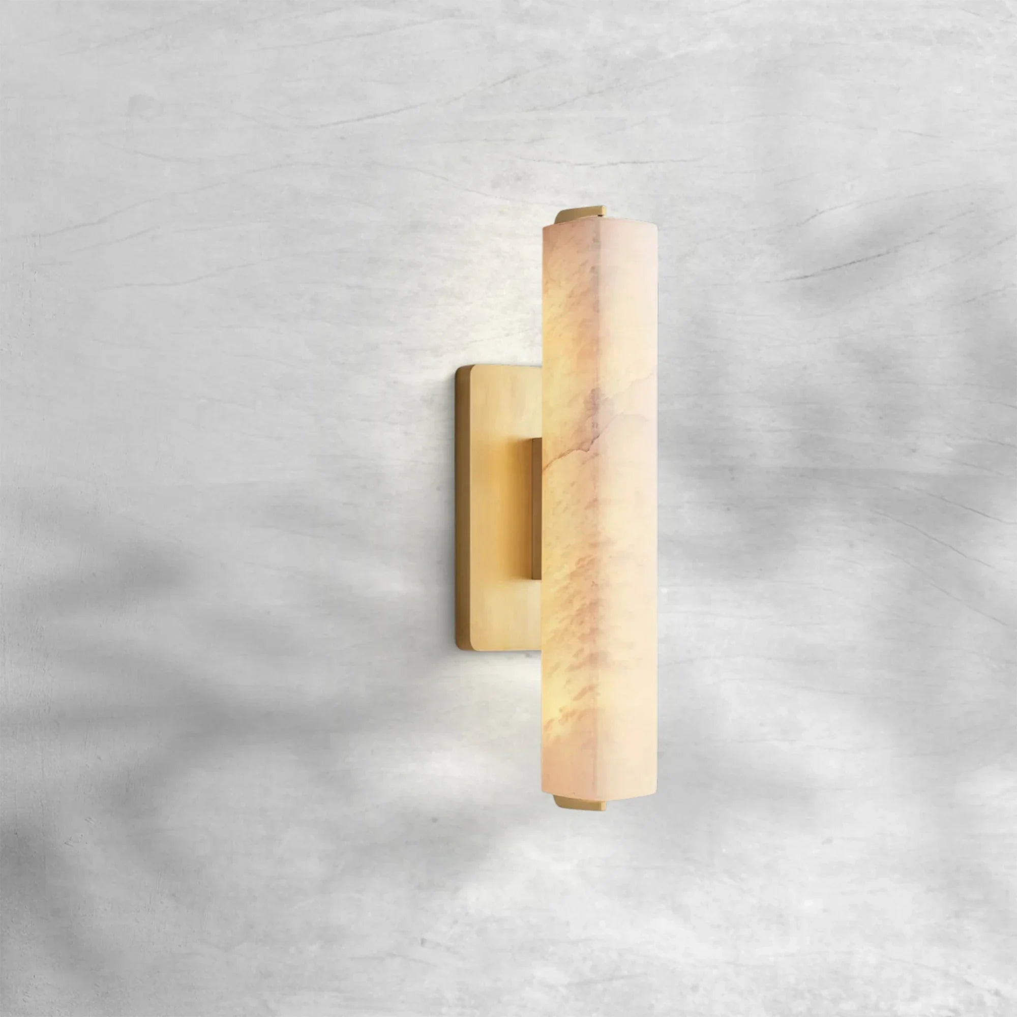 Auduban captures the spirit of 1960s Italian minimalism, featuring a prism of alabaster mounted on a solid brass frame. The collection is both striking and restrained, evoking the warmth of candlelight through elongated LEDs that cast beautiful light through the translucent stone.