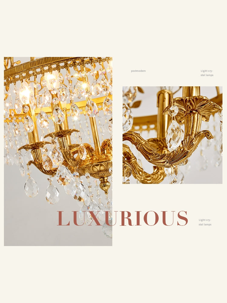 Baroque Luxury Full Copper Crystal Pendent Candle Chandelier for Entryway/Foyer/Dining Room