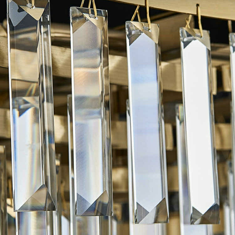 The whole light body is made of high-quality crystal and metal. It is designed into a luxury modern style. It is absolutely stunning no matter light turns on or not.