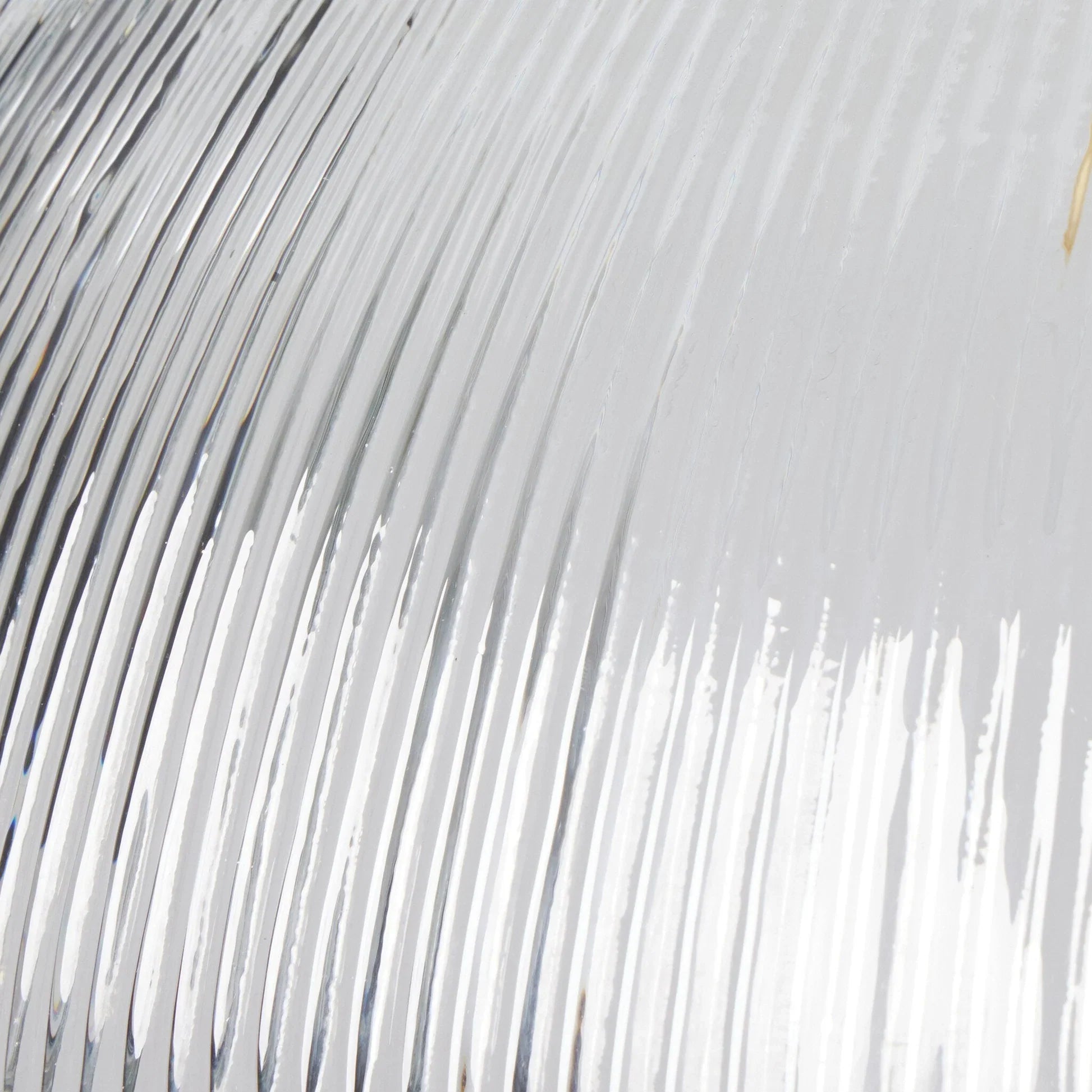 Reeded glass leans traditional, accented by rust-toned antiqued metal on the socket holder and chain for a vintage look. Small in scale, meant to be hung in groups.