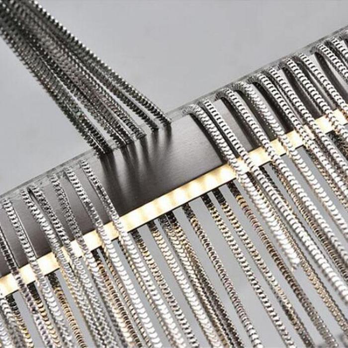 | This Chandelier Constructed Of Aluminum Chain And Stainless Steel Frame,With The Warm Tone of The Lamp's Illuminated,Ensures That A Subtle Glow Of Light Is Emitted In The Room That Adds Drama And Mood Lighting. |