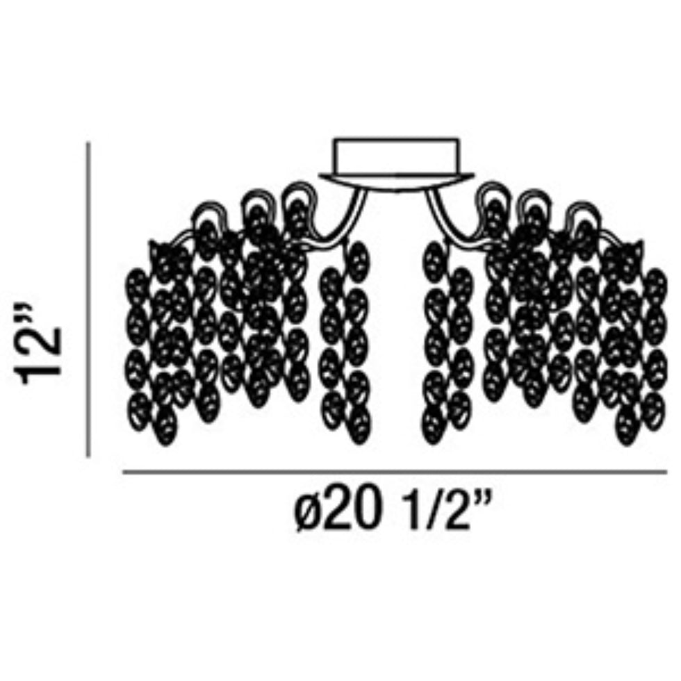Campobasso 5-light 21" LED flush mount in a magnificent gold finish is an artistic masterpiece, perfect for making a grand statement in spaces with lower ceilings. This fixture is adorned with intricate gold metal flourishes, beautifully complemented by hand-pressed glass wafers. Each of these glass elements is unique, showcasing 3-colored rippled glass that is deliberately juxtaposed to create captivating contrast and structural depth. The individual variations in the glass ensure that no two fixtures are exactly alike, adding to its bespoke charm. Ideal for hallways, bedrooms, or living areas, the Campobasso flush mount casts a luxurious glow, transforming any interior into a dazzling display of light and craftsmanship. Its blend of meticulous detailing and rich materials offers unparalleled elegance and visual intrigue.