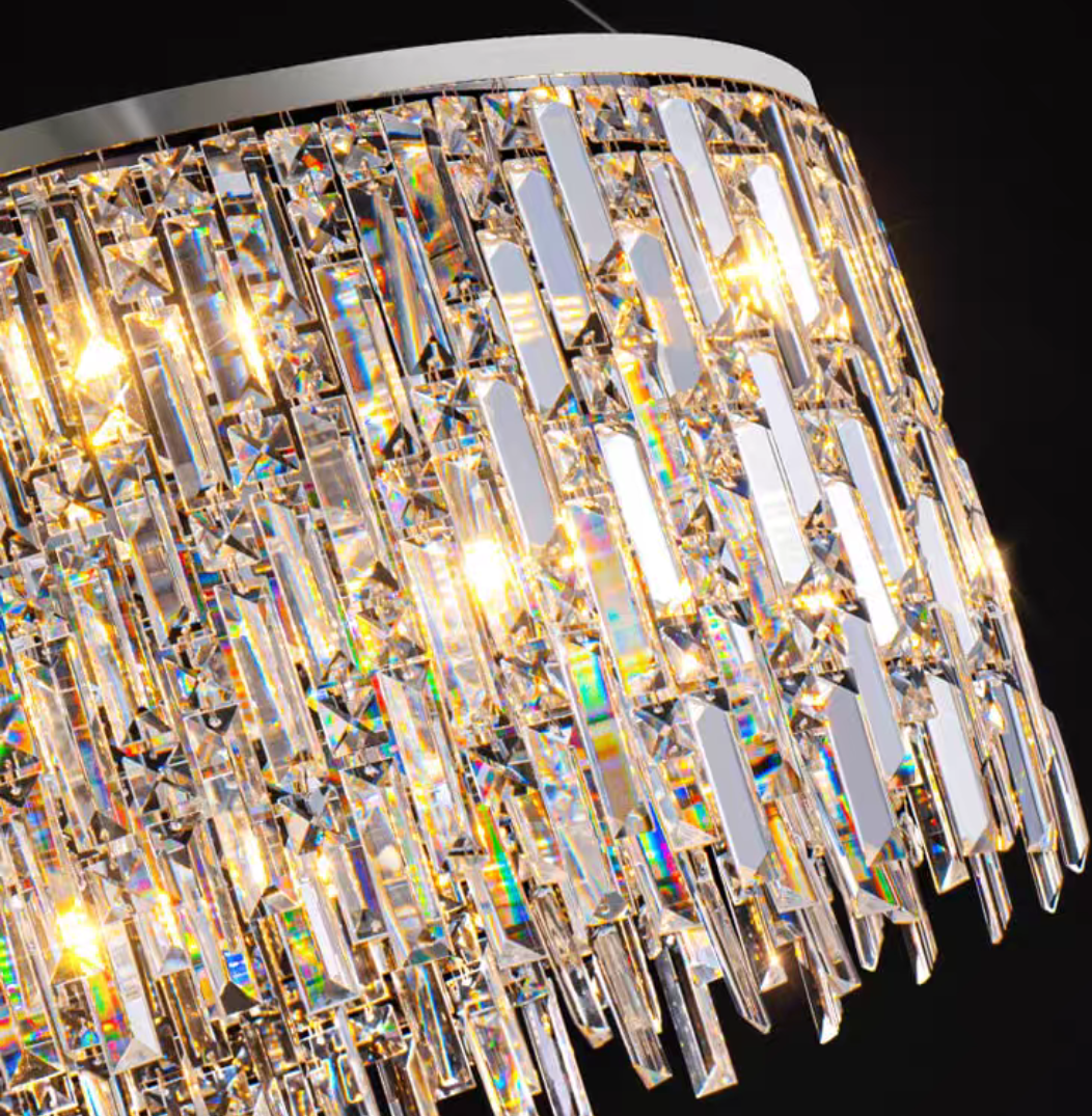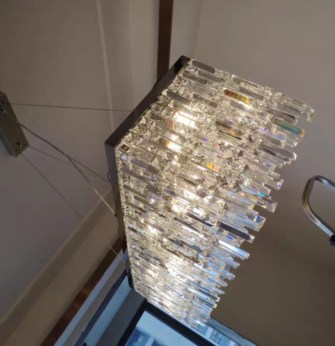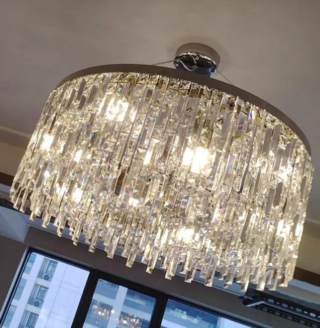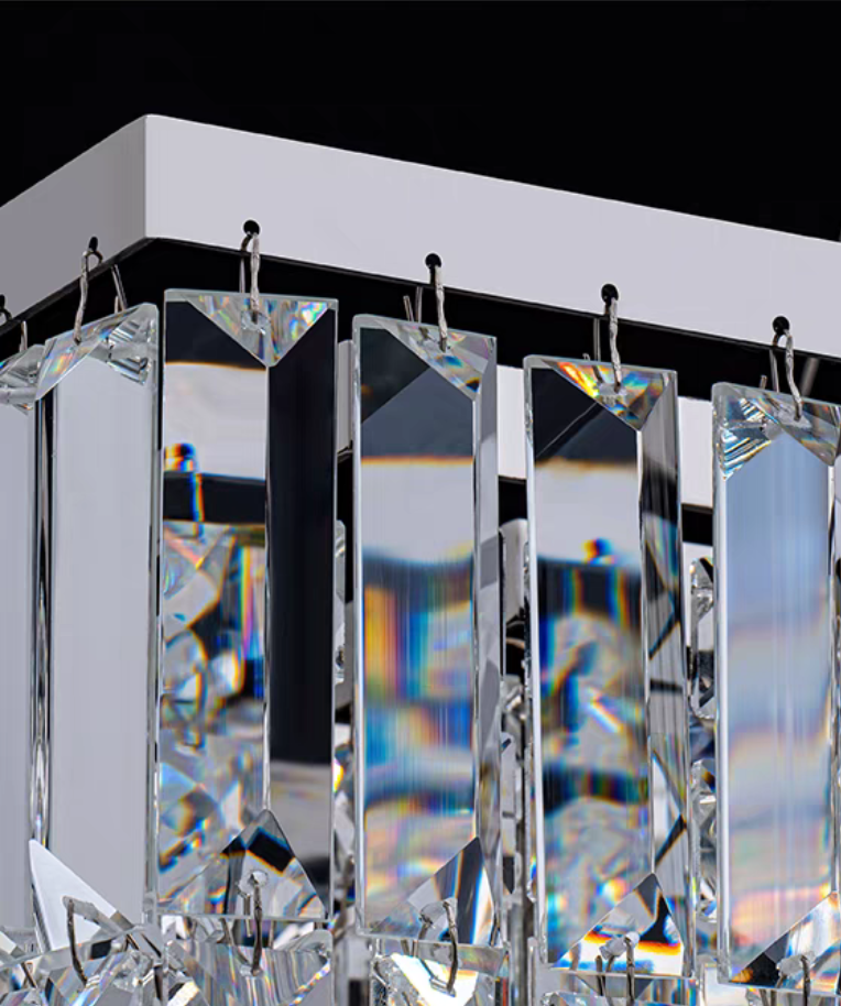 The whole light body is made of high-quality crystal and metal. It is designed into a luxury modern style. It is absolutely stunning no matter light turns on or not.