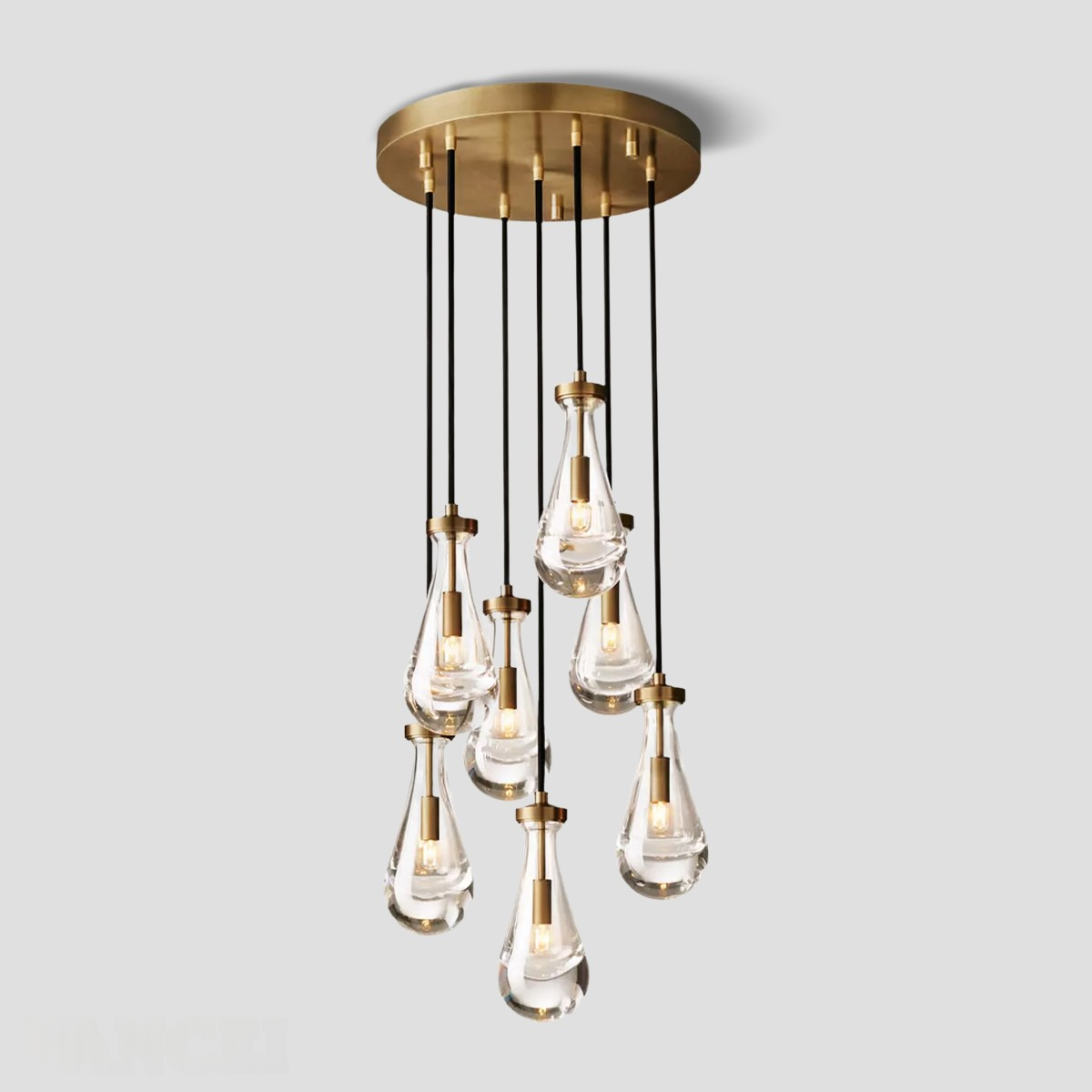 Our with chandelier is made of copper and glass, this chandelier series chandelier echoes the ingenuity of industrial design of the 20th century era. Thousands of faceted, hand-wrapped crystal glass beads encase a steel frame, creating a floating sphere suspended by steel cables. These beads reflect and refract the light from the room, casting a warm glow.