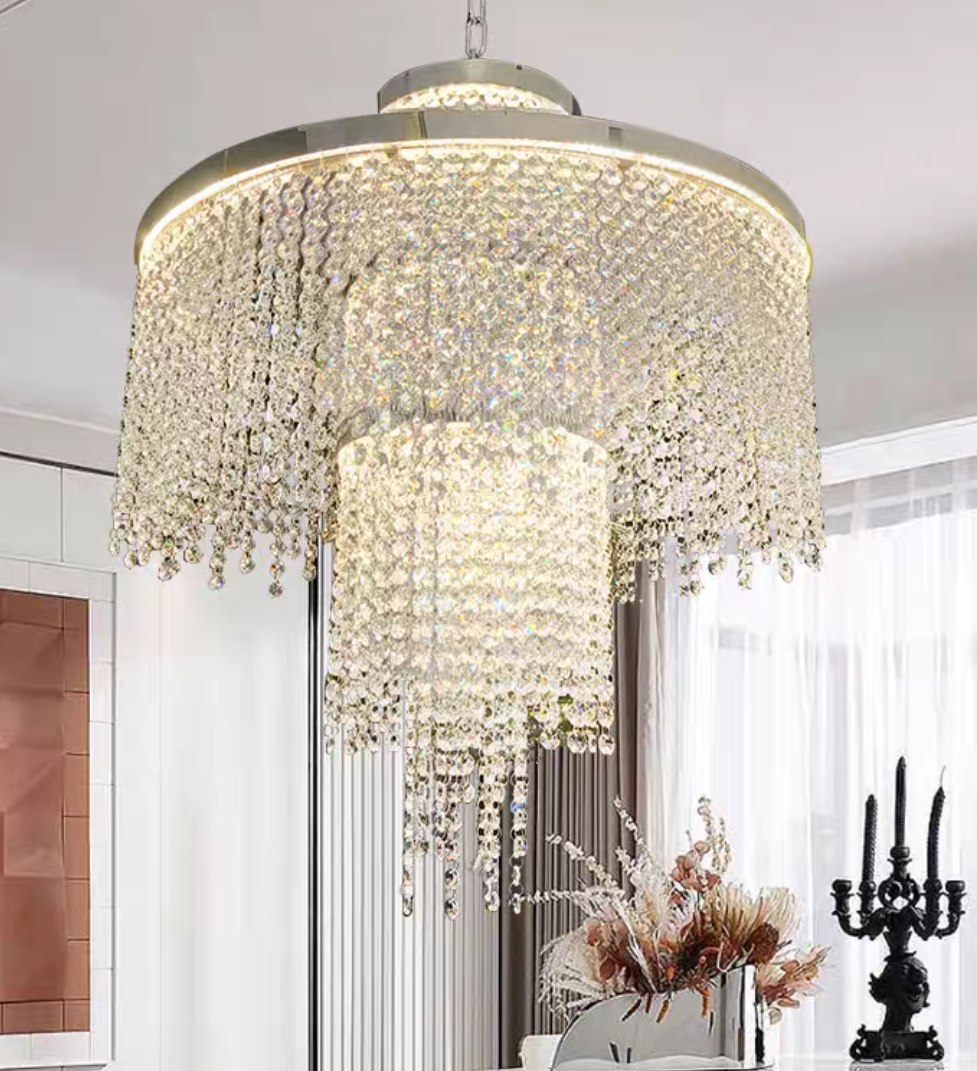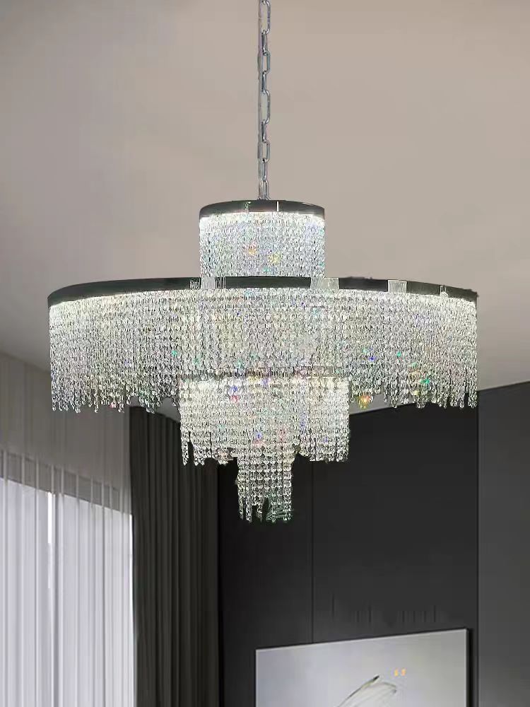 Crystal Chandelier Silver Finish Ceiling Mount Light Fixture for Living Room Dining Room