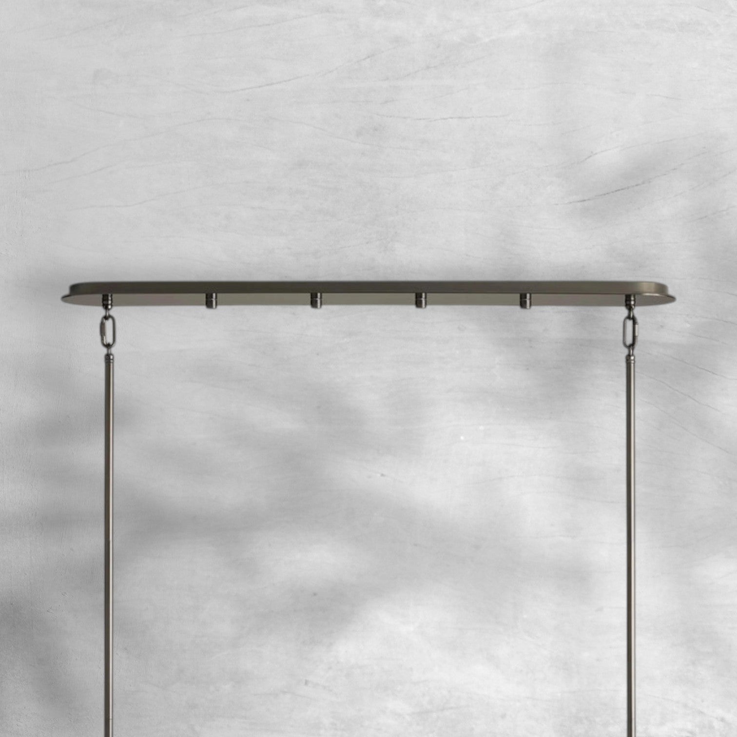 WIDTH 51.5" DEPTH 22" HEIGHT 12" WEIGHT 92.37 LBS NUMBER OF SOCKETS 4 MAXIMUM HANGING DISTANCE 160.6" CANOPY DEPTH 6.69" CANOPY WIDTH 22.24" - 63" Width x 30.5" Depth x 20.5" Height x 30.5" Diameter