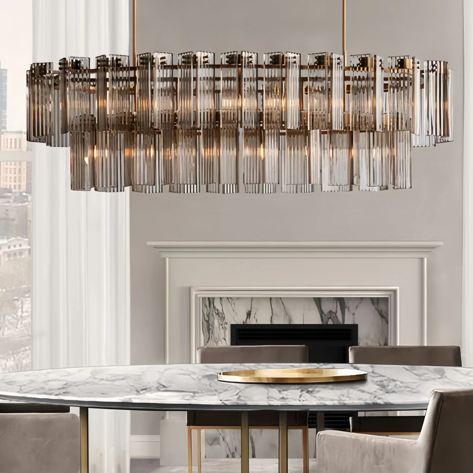 A fresh take on a traditional silhouette, our Delsie Collection radiates old Hollywood glamour. Crafted from reeded glass panels elegantly arranged around a steel frame, Delsie creates dramatic ambiance in any space.