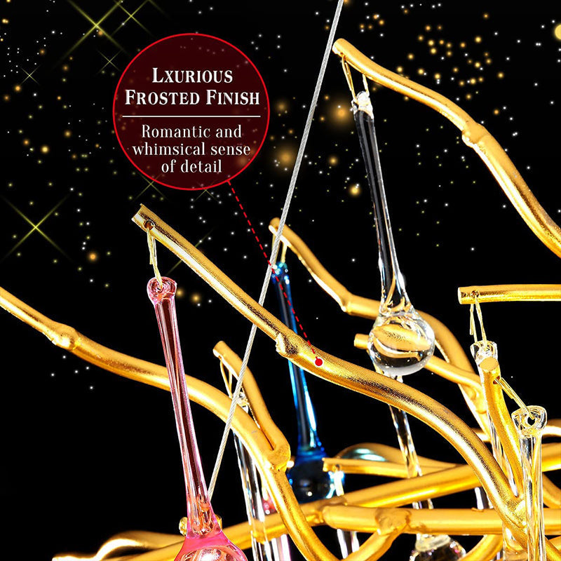 The soft and warm light emitted in the colorful crystals. Exciting and alive, the colorful droplets providing an alluring romantic sense, reminiscent of the beauty of nature. Ideal for delicate interiors. |