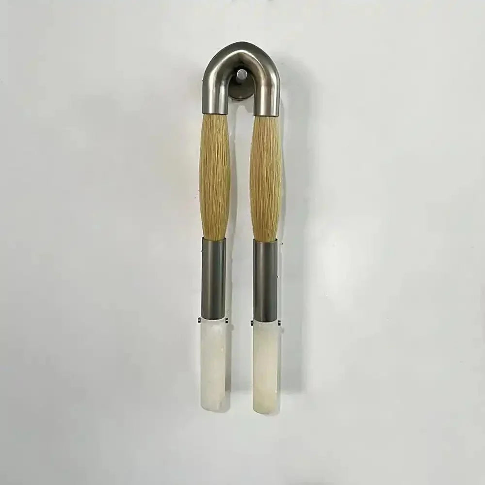 A thorough study of materials evokes the elegance and strength of the tassel. The weft of the tassel, combined with metal and etched glass, hints at the structural and load-bearing function of the thick thread.