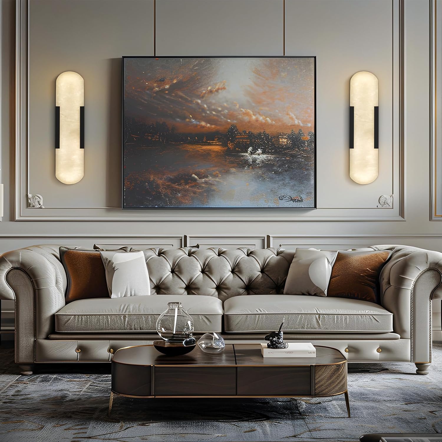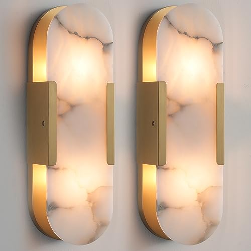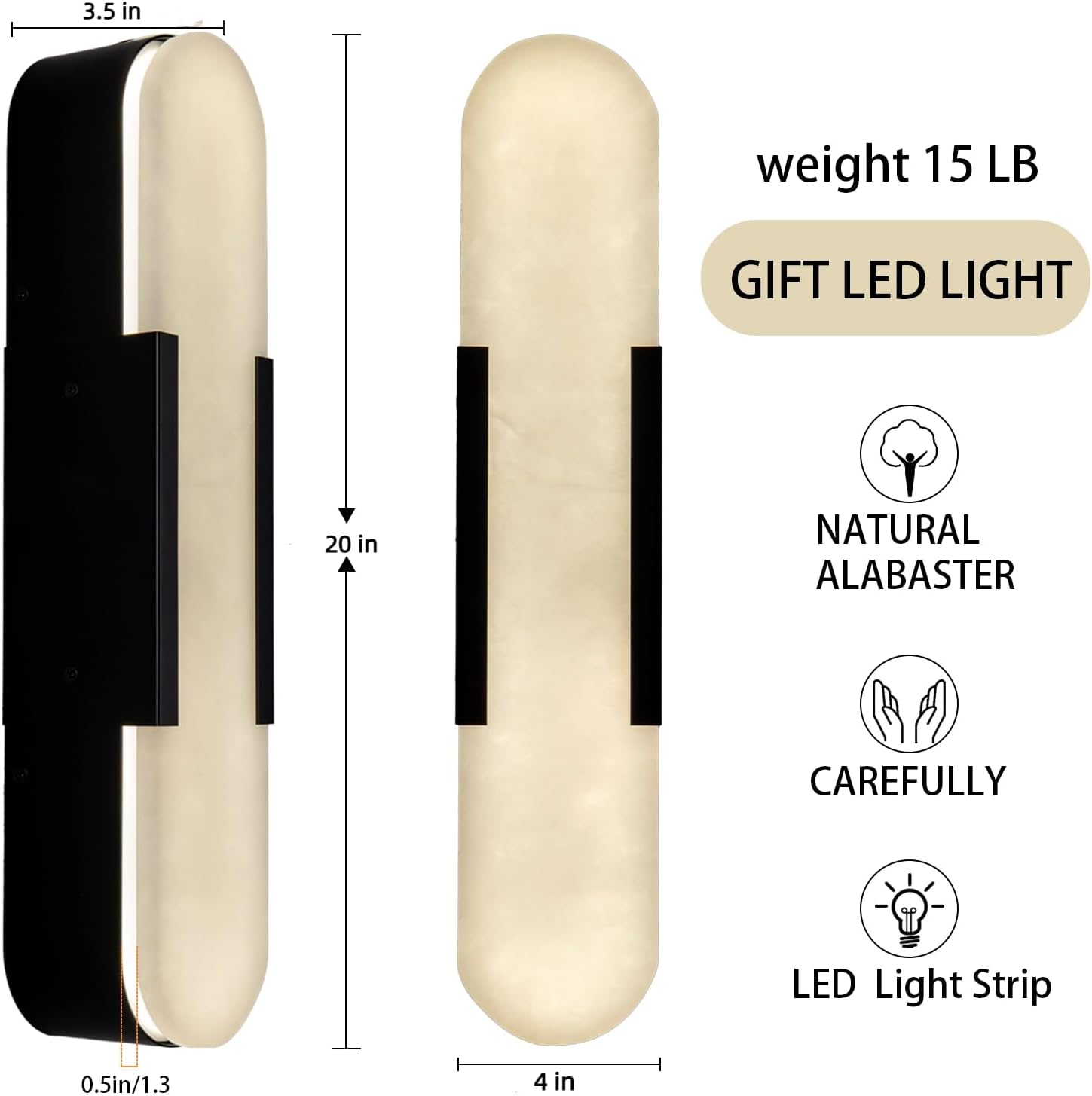 Crafted from natural alabaster marble, these sconces add a touch of luxury to any room while delivering soft, glare‑free illumination. The sleek black metal frame and matte finish blend effortlessly with modern, classic or retro décor. Easy to install with all mounting hardware included, they provide stable, durable lighting for hallways, bathrooms, bedrooms, and more. Enjoy energy‑efficient LED performance that brightens spaces without compromising style.