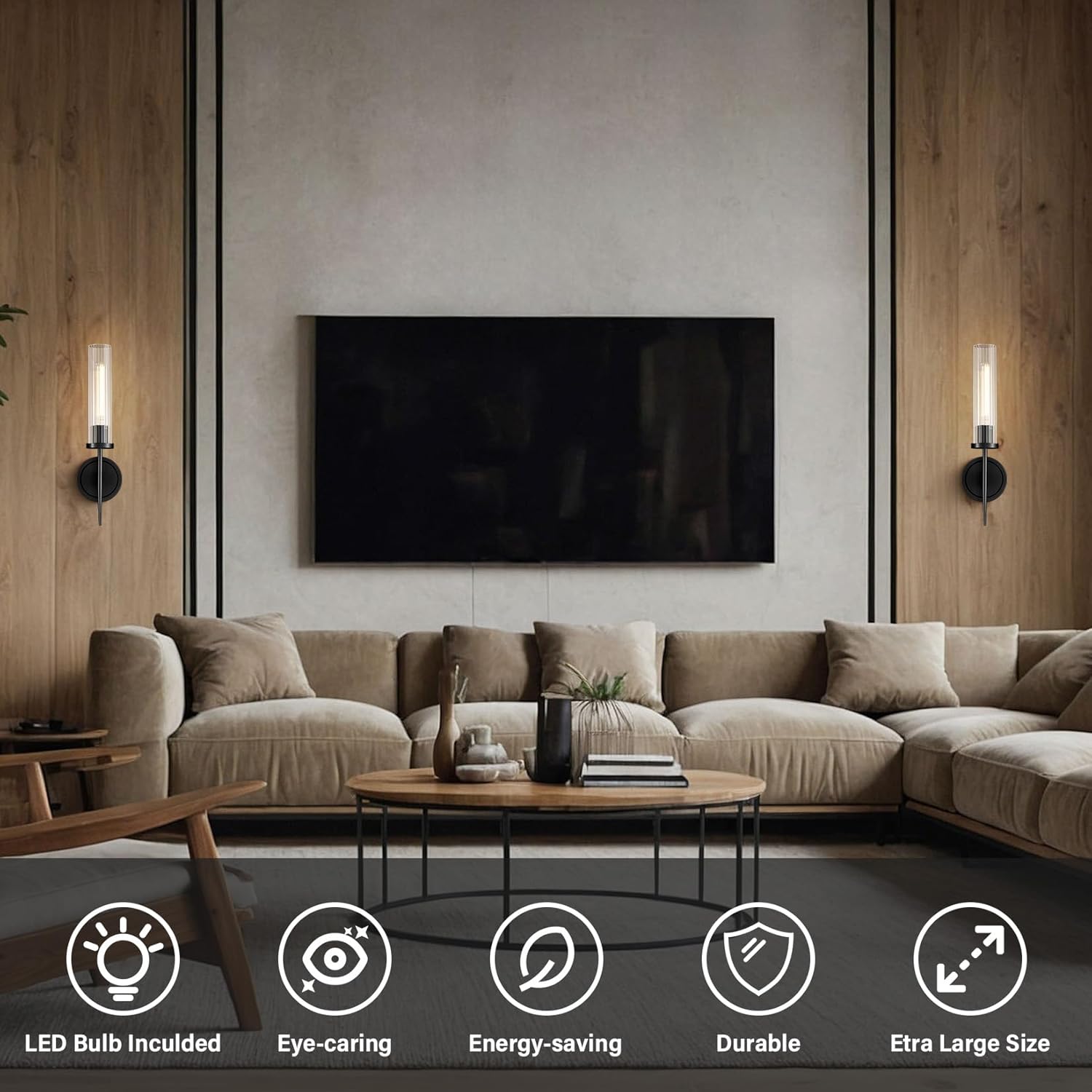 Add a splash of modern elegance with this black wall sconce set, featuring a sleek water‑ripple glass shade that diffuses a warm, inviting glow. The compact 17.7‑inch length fits snugly in tight spaces, making it perfect for bathrooms, hallways, or cozy bedrooms. Each unit includes two E26 bulbs and a sturdy metal‑brass base for lasting durability, even in humid environments. Easy‑mount hardware lets you install the pair in minutes, instantly upgrading your décor.
