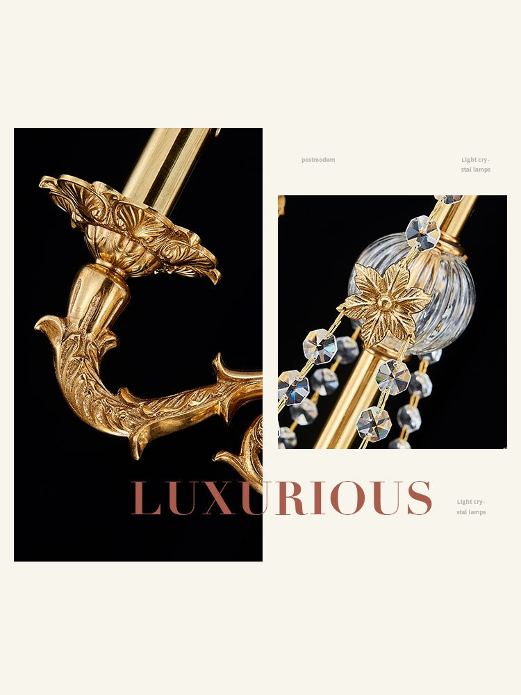 This chandelier is made of glass, brass and crystal materials. The chandelier has a single tier design with multiple candle-like bulb stems with small saucer cups resting on curved brass arms that are connected by crystal chains to a central brass arm above. Below is a glass shade with a unique shape and fine workmanship that transmits light softly and without harshness. Perfect for rooms with high ceilings, including living rooms, hallways, foyers, dining rooms, vintage cafes, etc.As a decorative or lighting fixtures are very suitable,can make your guests bright.