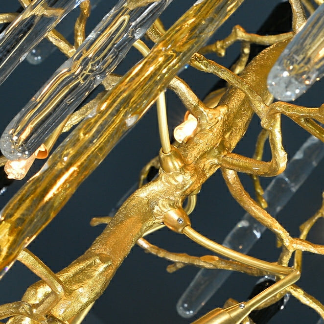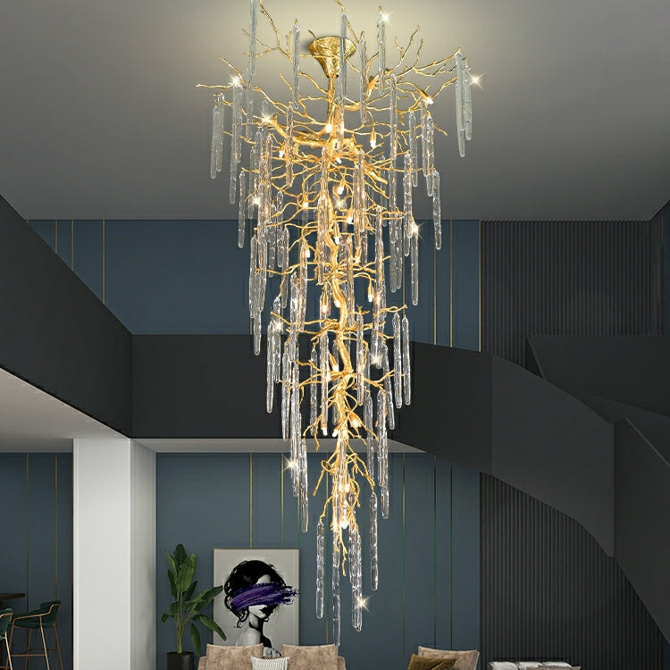 Extra Large Brass Tree Branch LED Chandelier Crystal Bar Drops Ceiling Light Fixture For Foyer Living Room Hall