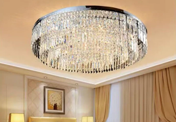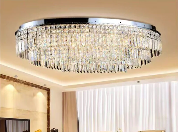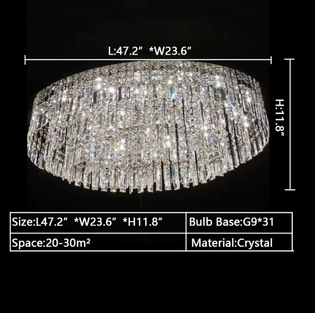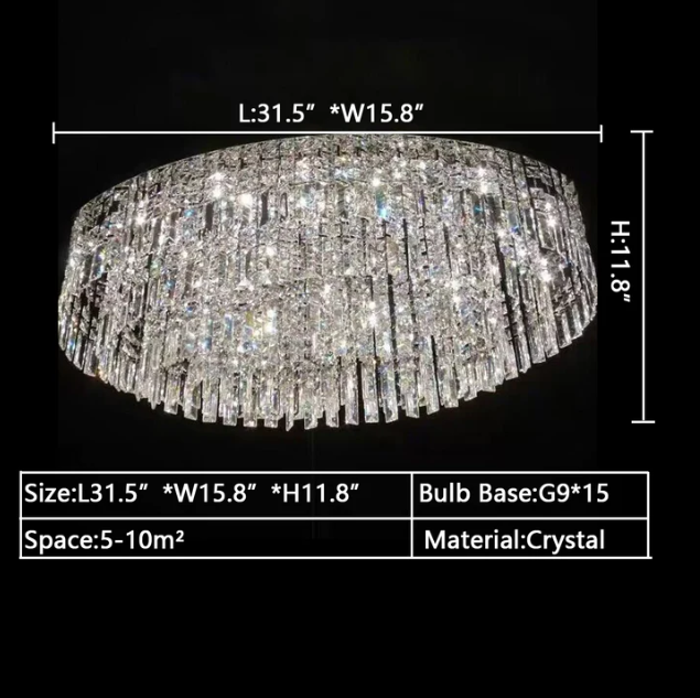 A crystal encrusted chandelier is perfect for adding a little sparkle to your home. This oval/round ceiling crystal chandelier is made of high quality crystals, square crystals arranged in layers to form an elegant crystal curtain, crystal light source, hugging the ceiling, ready to provide a delicate glow to your space. This charming fixture comes in different sizes to suit different home decorating needs,perfectly suited for areas with low ceilings, whether it's a bedroom, living room, hallway or entryway.