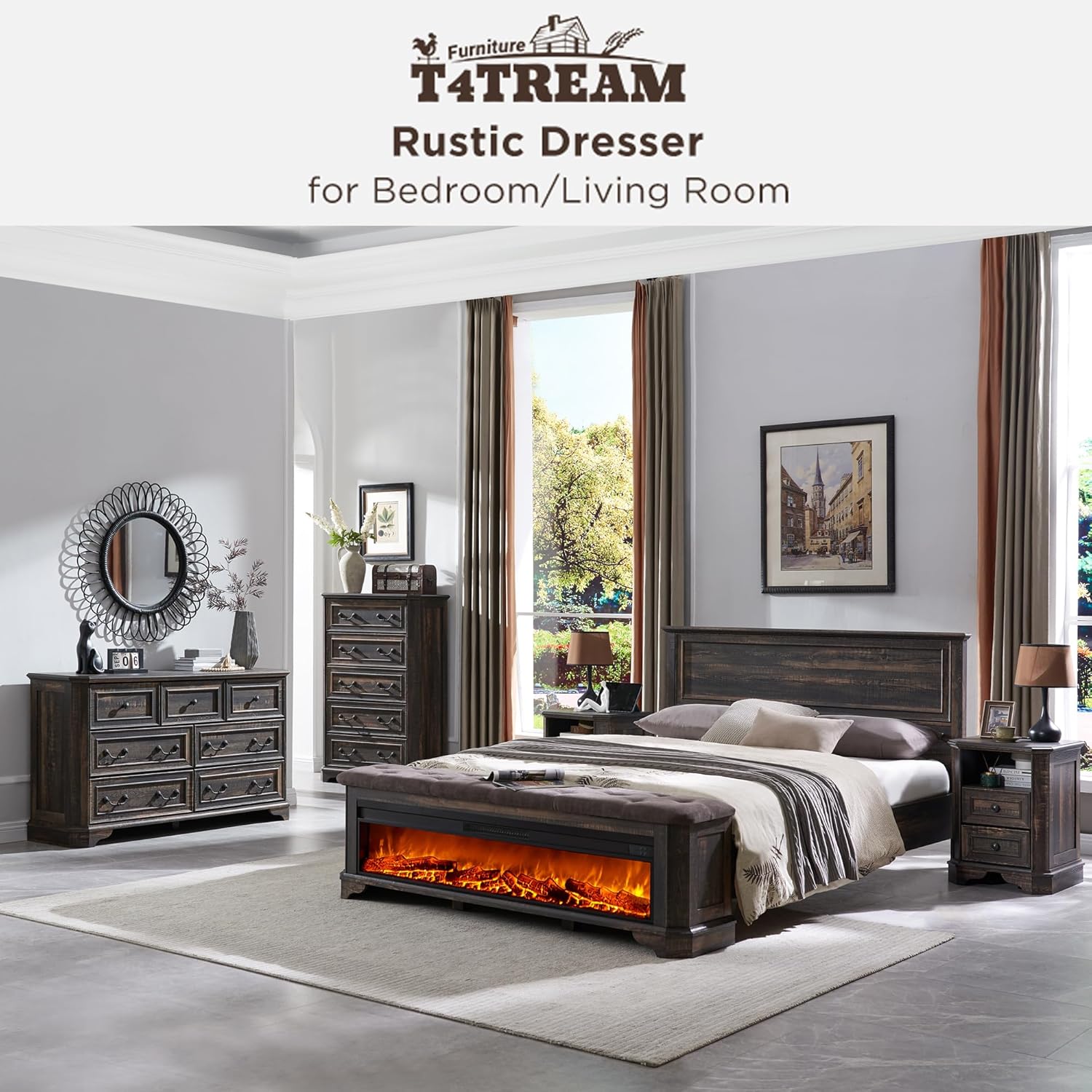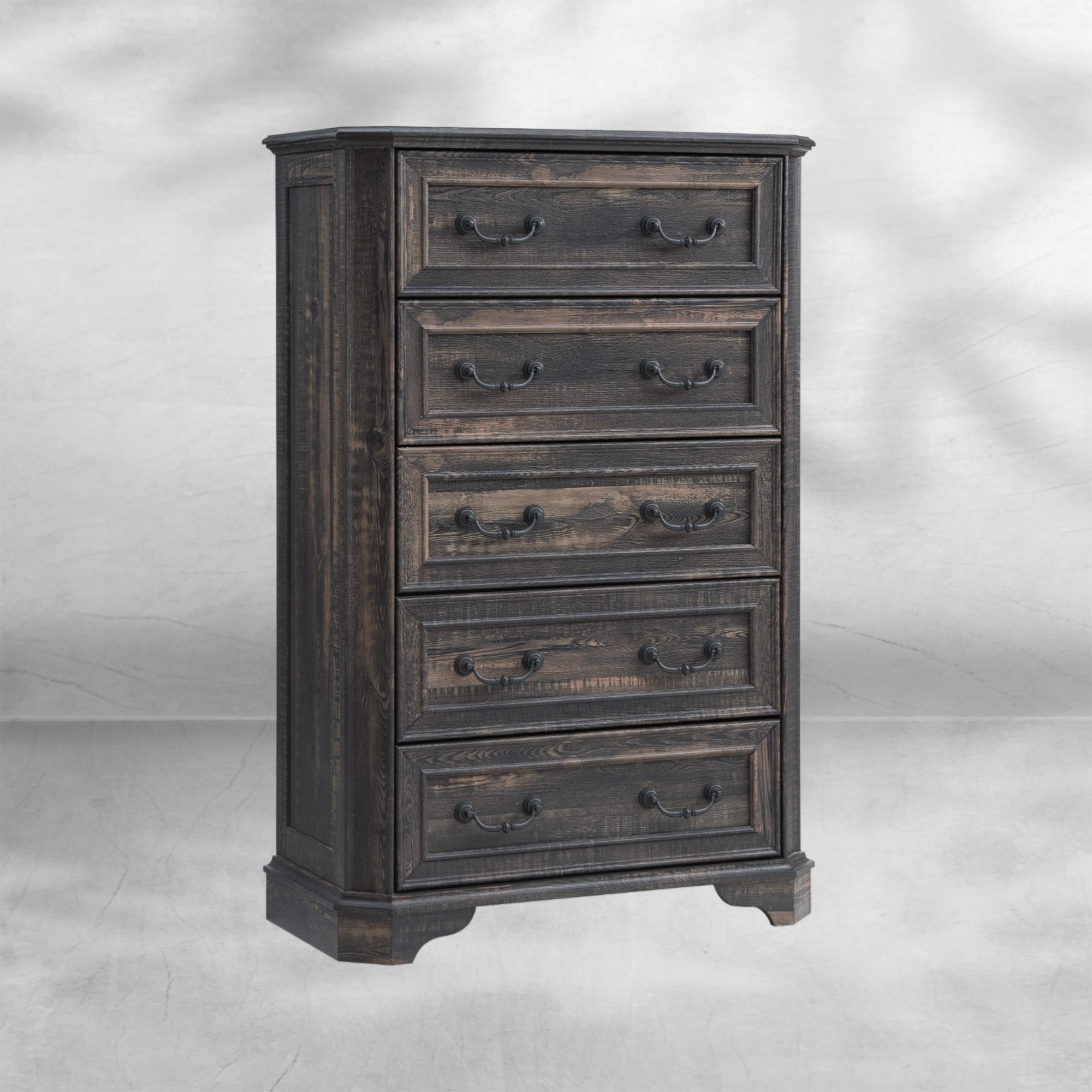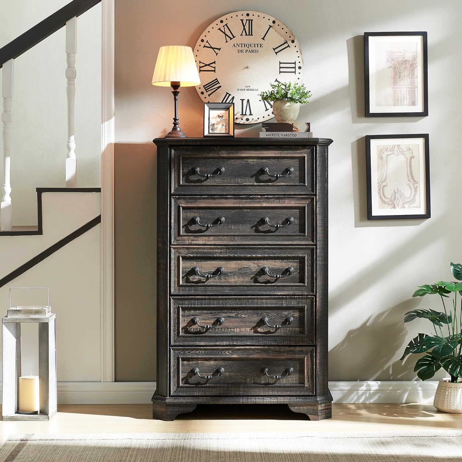 Farmhouse 5-Drawer Dresser: Rustic Wood Chest for Bedroom Storage
