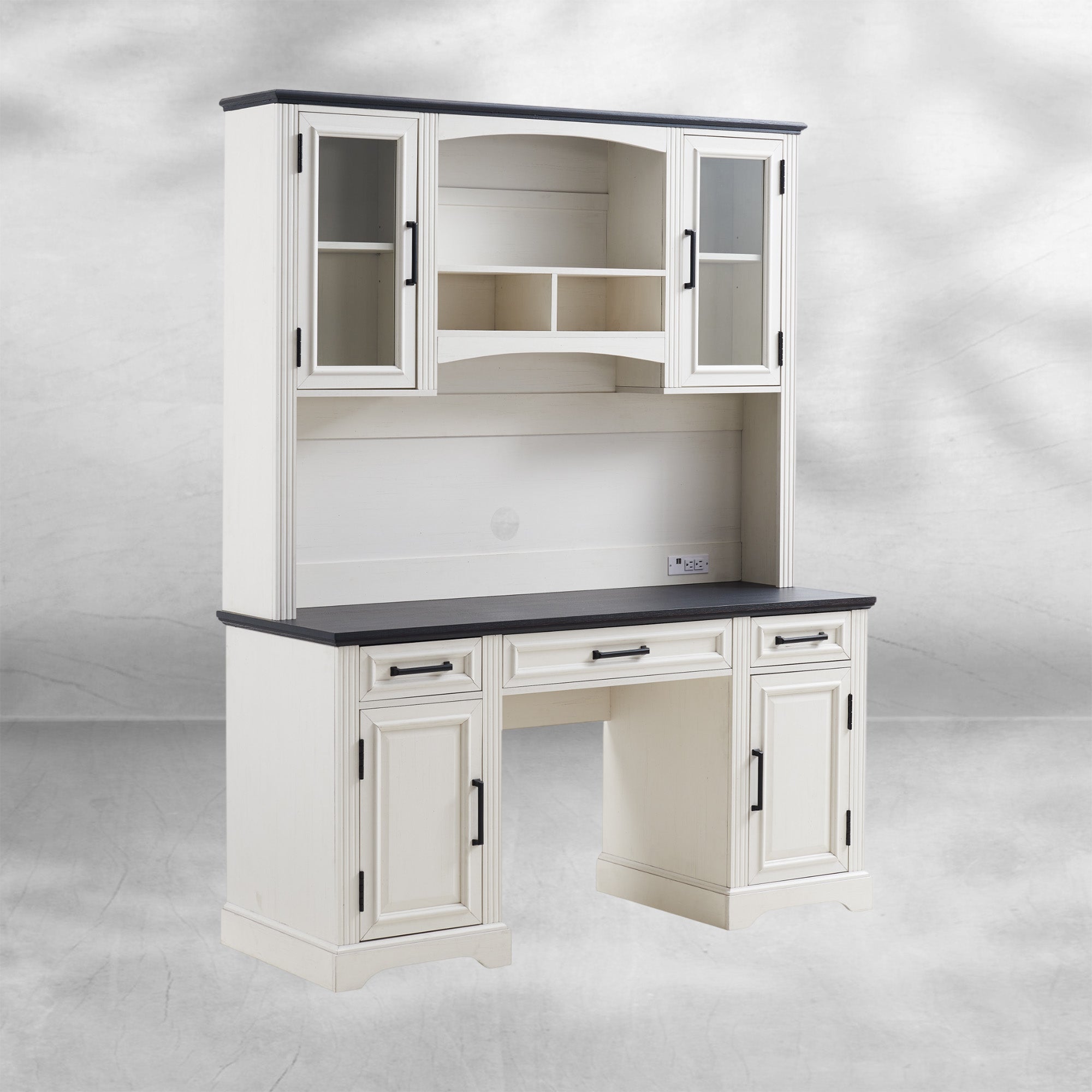 Elevate your workspace with this charming farmhouse-style computer desk! Complete with a hutch, drawers, and a storage cabinet, it's designed to keep you organized. The built-in charging station ensures your devices are always ready to go. This workstation is perfect for your home office, creating a productive and stylish environment.