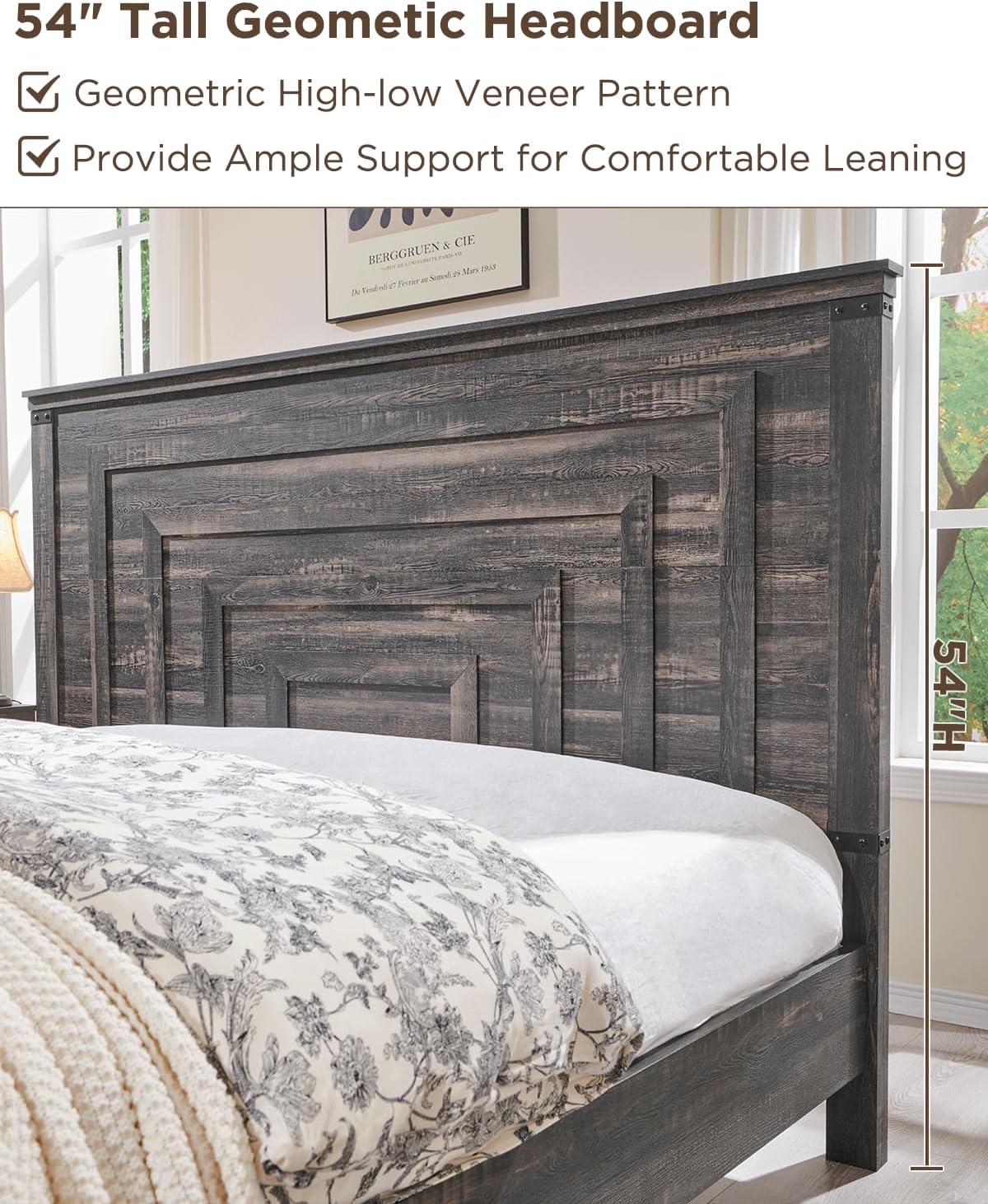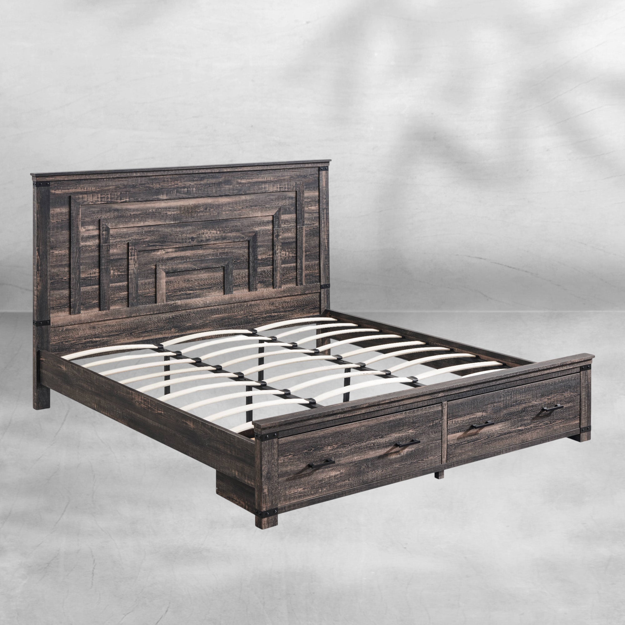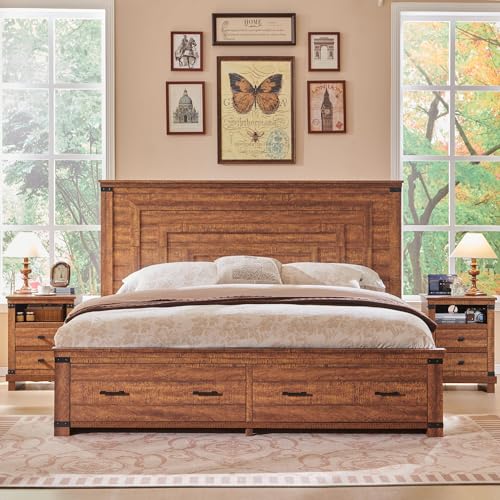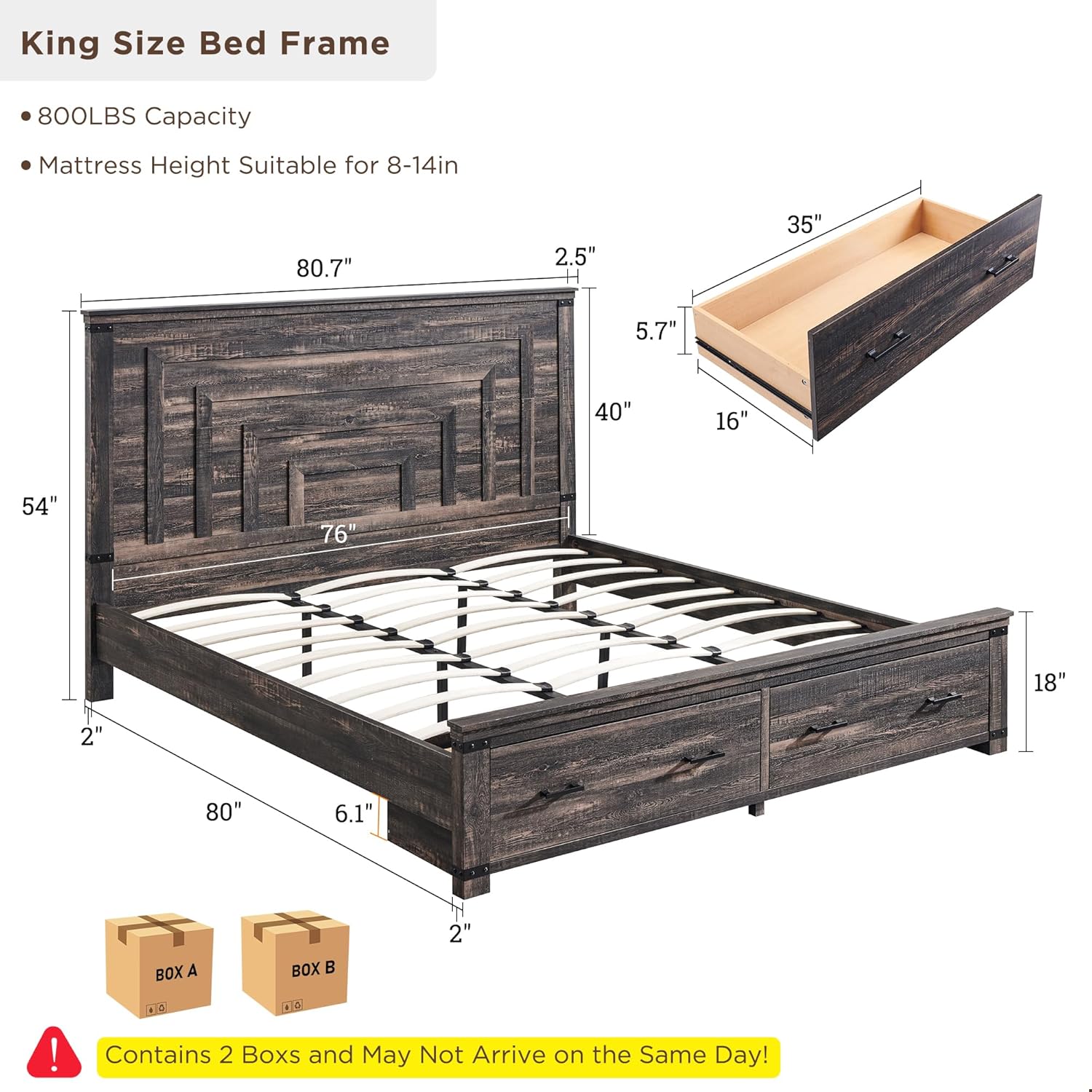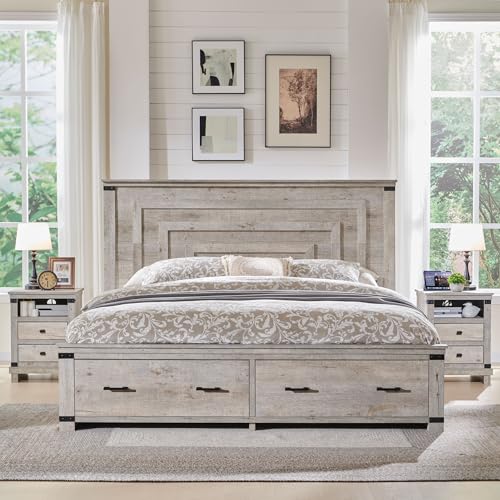 Farmhouse King//Queen Size Wood Bed Frame with Storage Drawers
