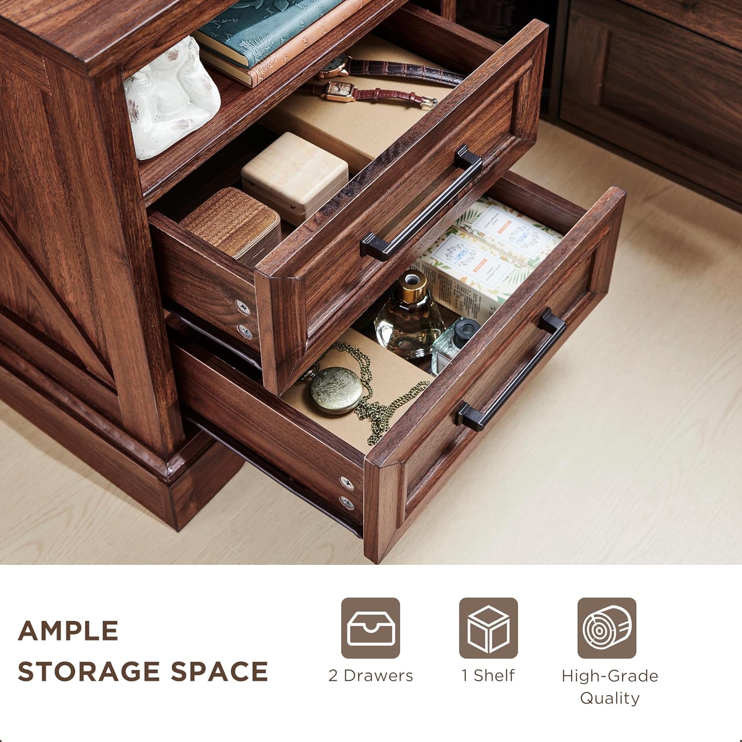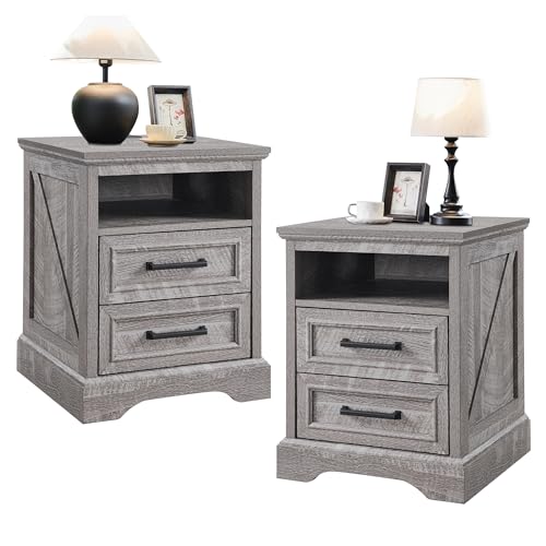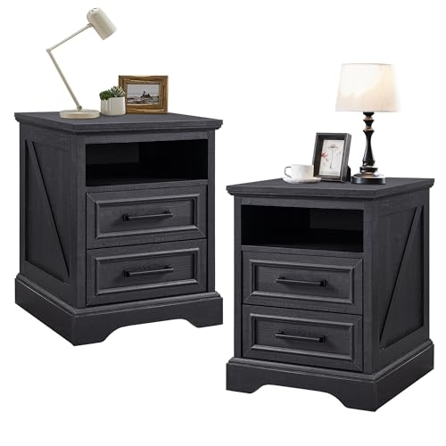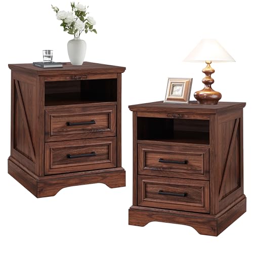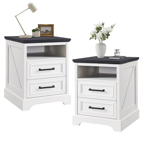 Farmhouse Nightstand with Charging Station - End Table with Drawers 18¡®¡¯