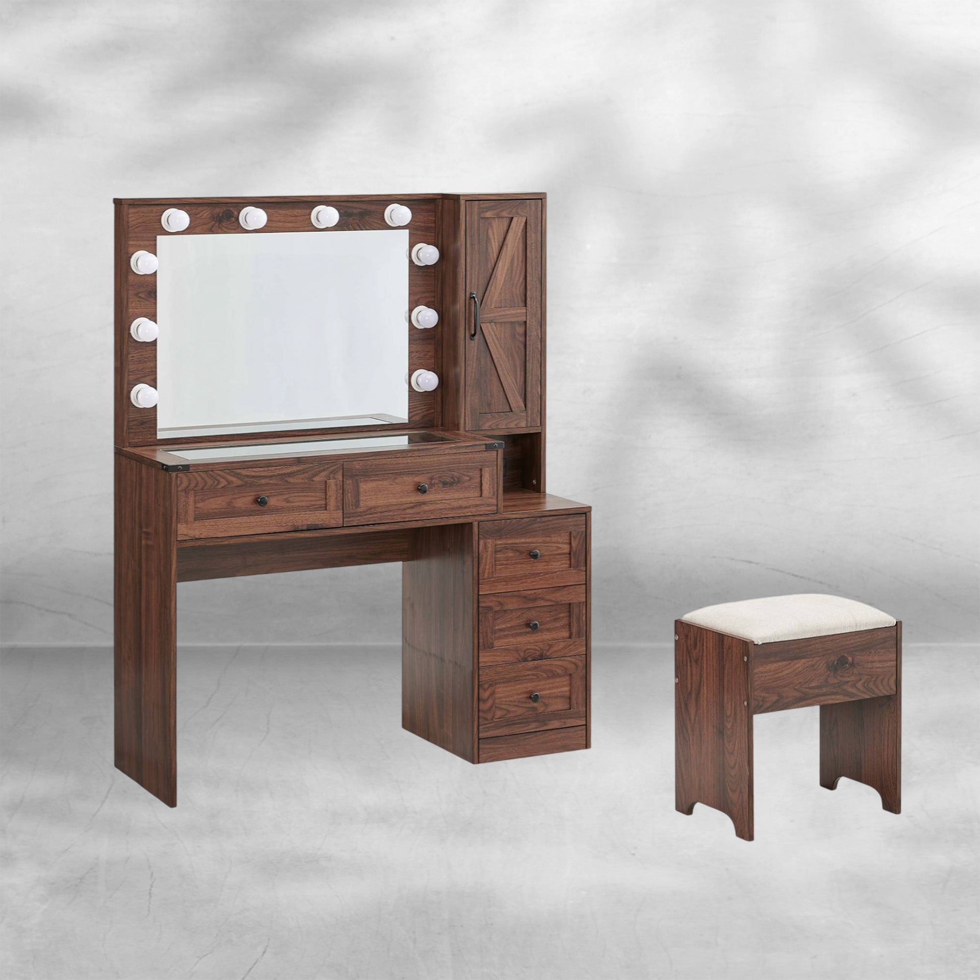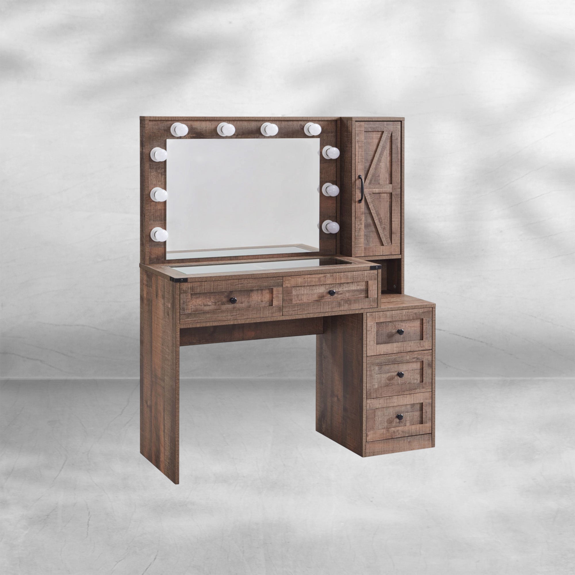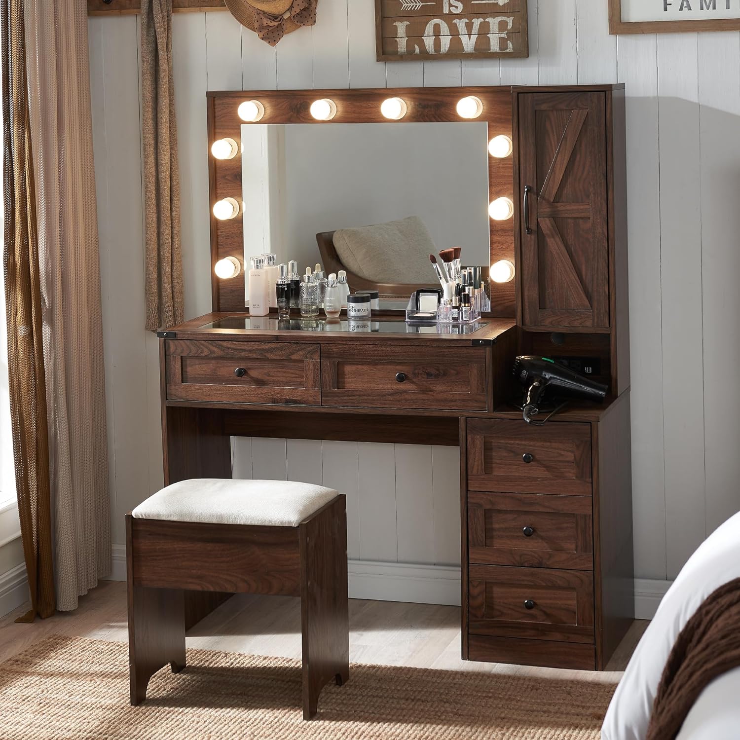 Farmhouse Style Vanity Makeup Desk 43" with Lighted Mirror & Charging