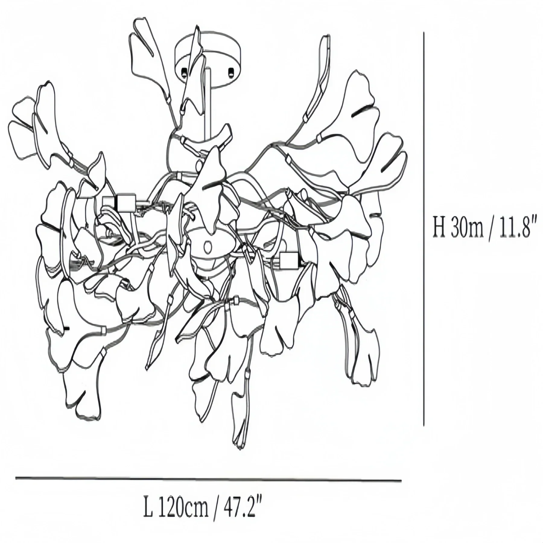Gingko Chandeliers are impressive bespoke installations, composed of handcrafted porcelain leaves. The interplay between ceramic and light has the power to create a sense of well-being and warm atmosphere. The light sculpture goes much further than its functional purpose of lighting a space. By illuminating itself, it defines its own shape and presence, becoming a mesmerizing artwork. Like a living plant, it has a natural, dynamic energy that both calms and revitalizes us. The design of the installations goes hand in hand with the architectural space and with the ideas of the architects and interior designers.