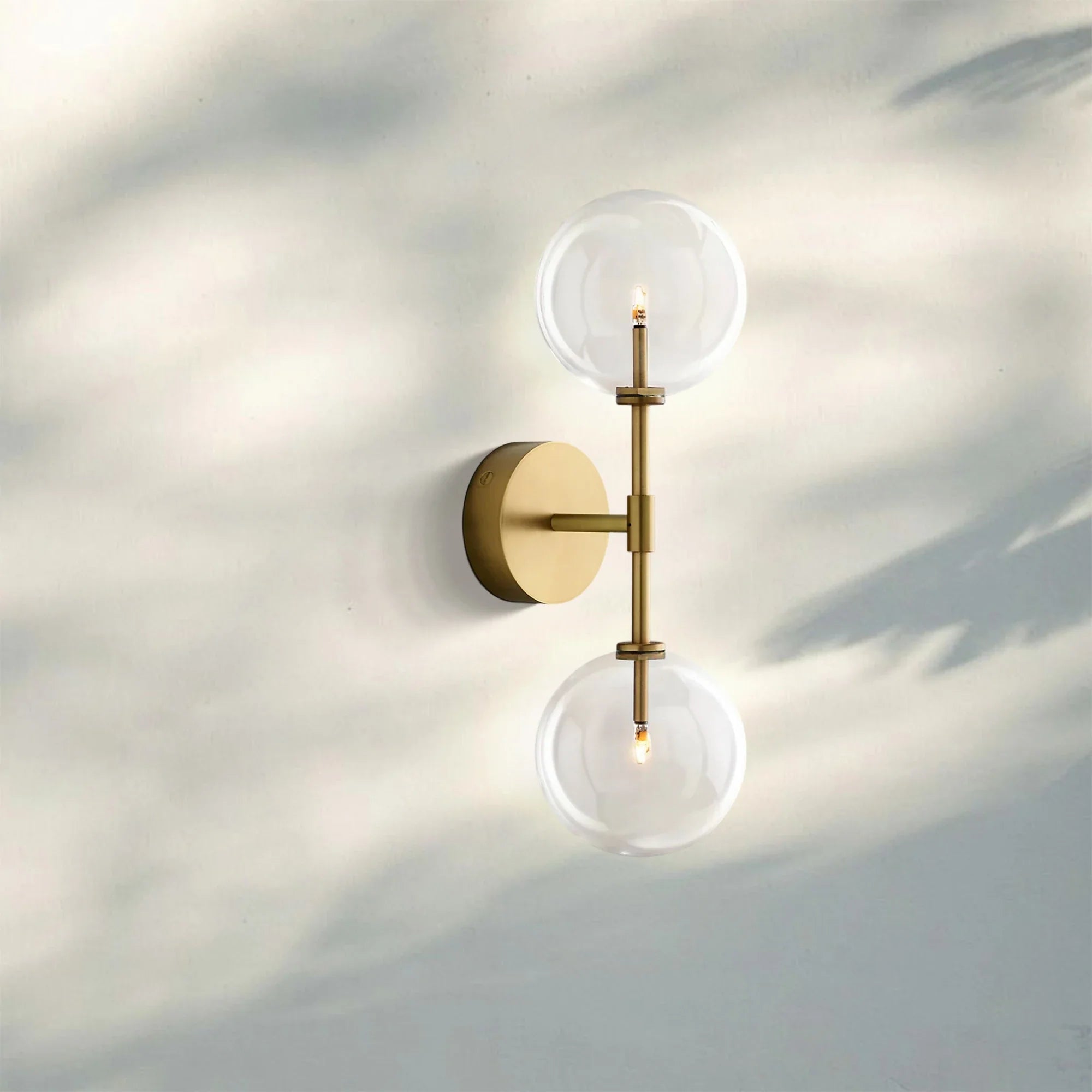 The Glass Globe collection showcases exquisite craftsmanship with handblown glass globes floating at both ends of a solid brass frame. Each piece is meticulously crafted by master glassblowers, blending dynamic fluidity with a sleek, modern architectural design. The clear borosilicate glass globes offer a refined, contemporary look, while the solid brass frame adds durability and elegance to any space.