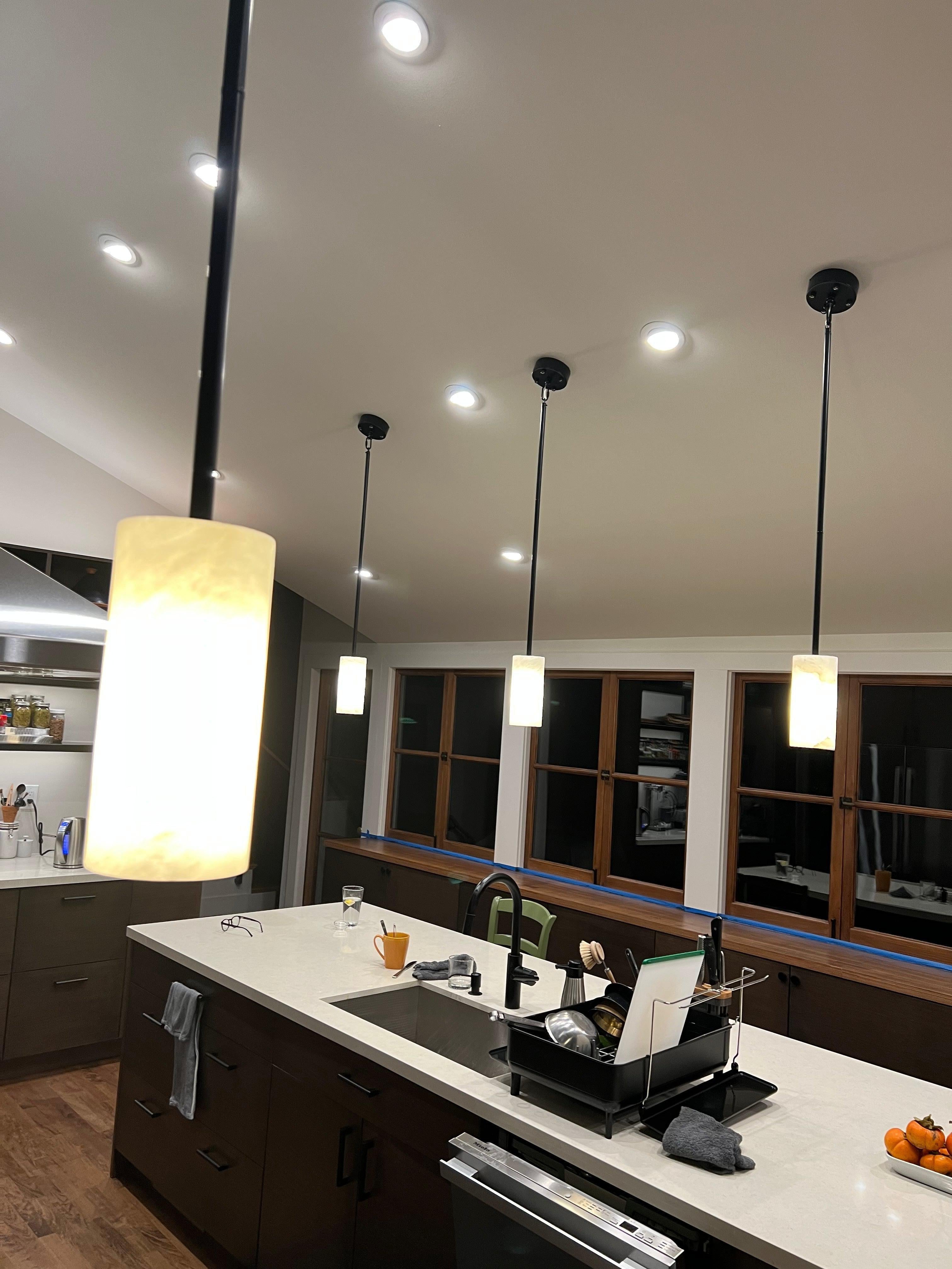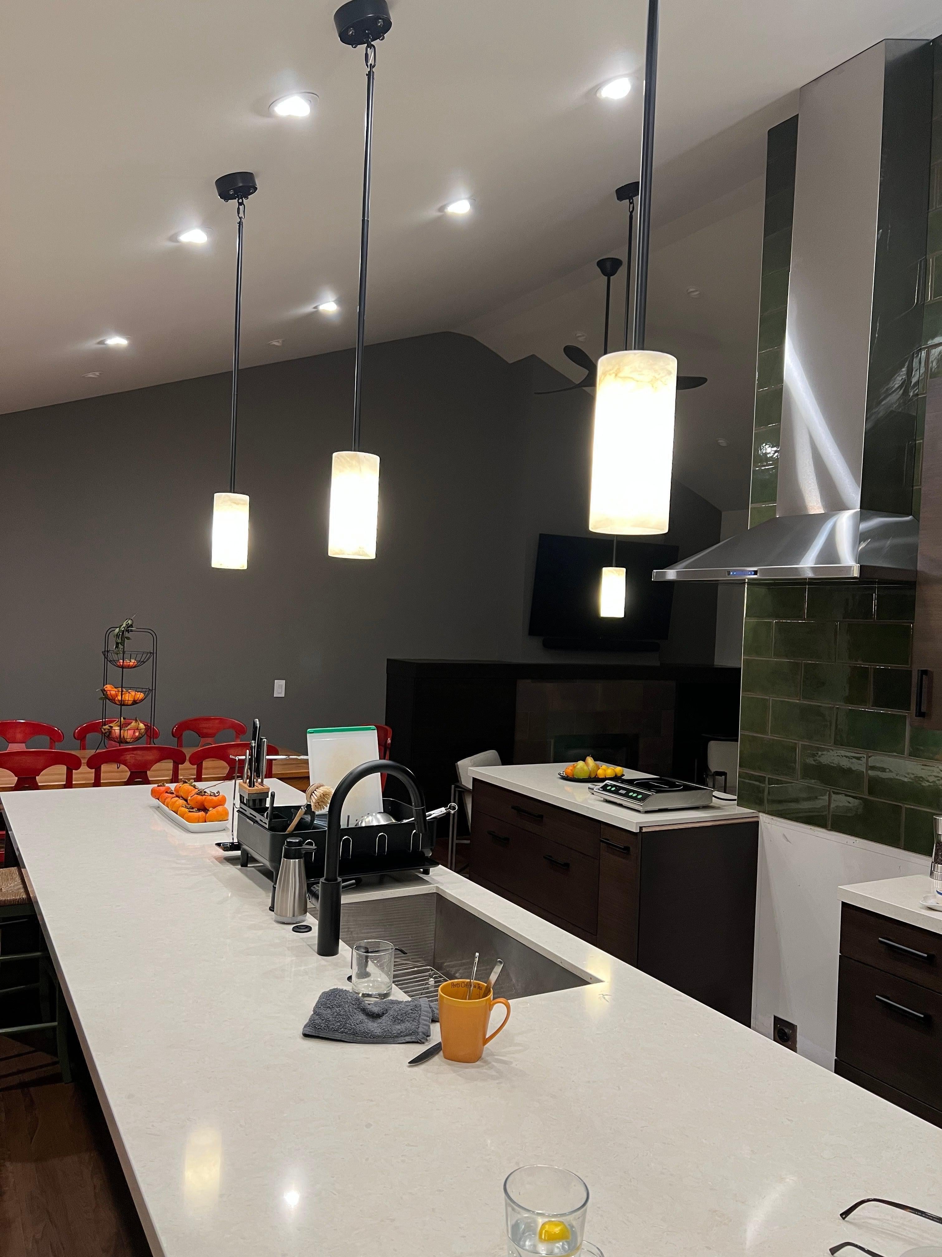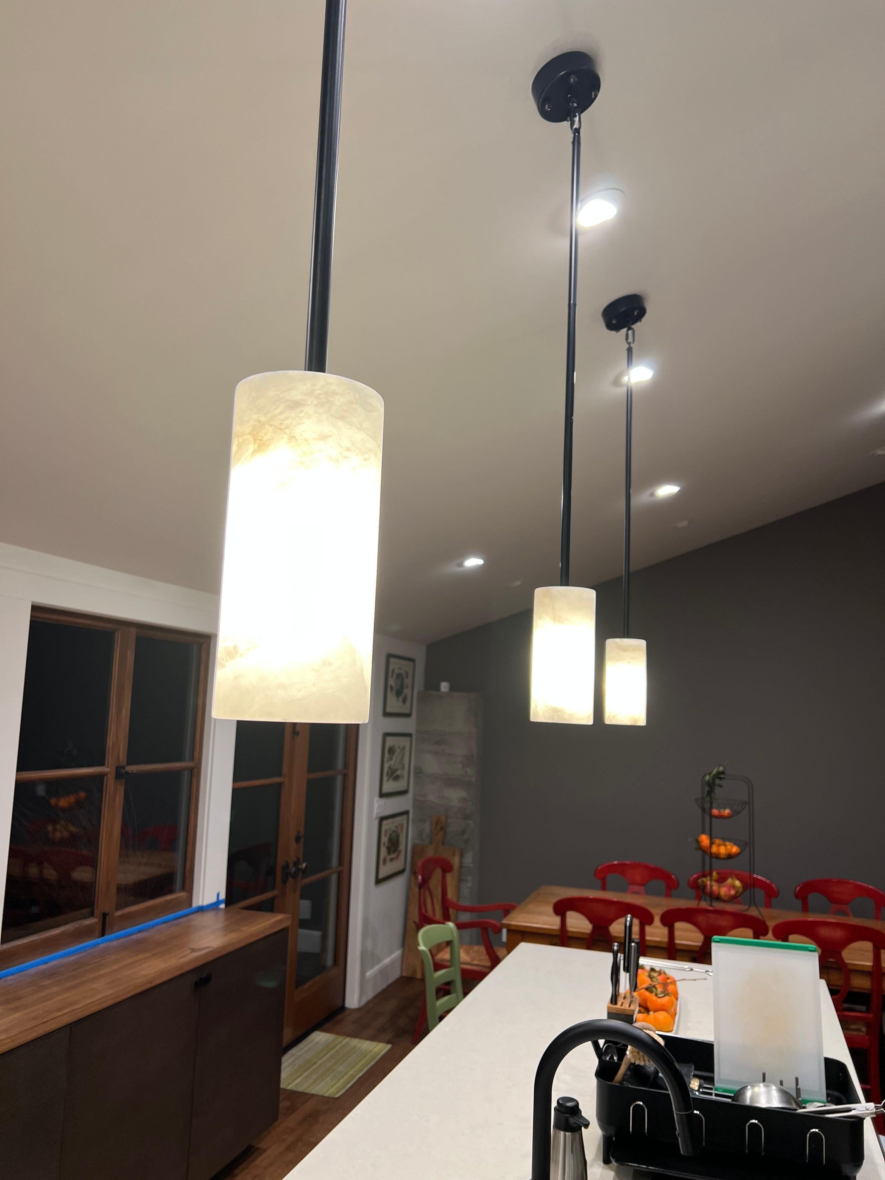Introducing our Hand Carved Alabaster Cylinder Pendant, where artisanal craftsmanship meets modern design. This pendant features a beautifully hand-carved alabaster cylinder, suspended by a sleek metal fixture that creates a striking contrast. The natural veining of the alabaster casts a warm, inviting glow, making it a stunning focal point in any room. Whether hung above a kitchen island or used as a statement piece in a living area, the Hand Carved Alabaster Cylinder Pendant embodies a perfect balance of elegance and simplicity, bringing an air of sophistication and timeless beauty to your home.
