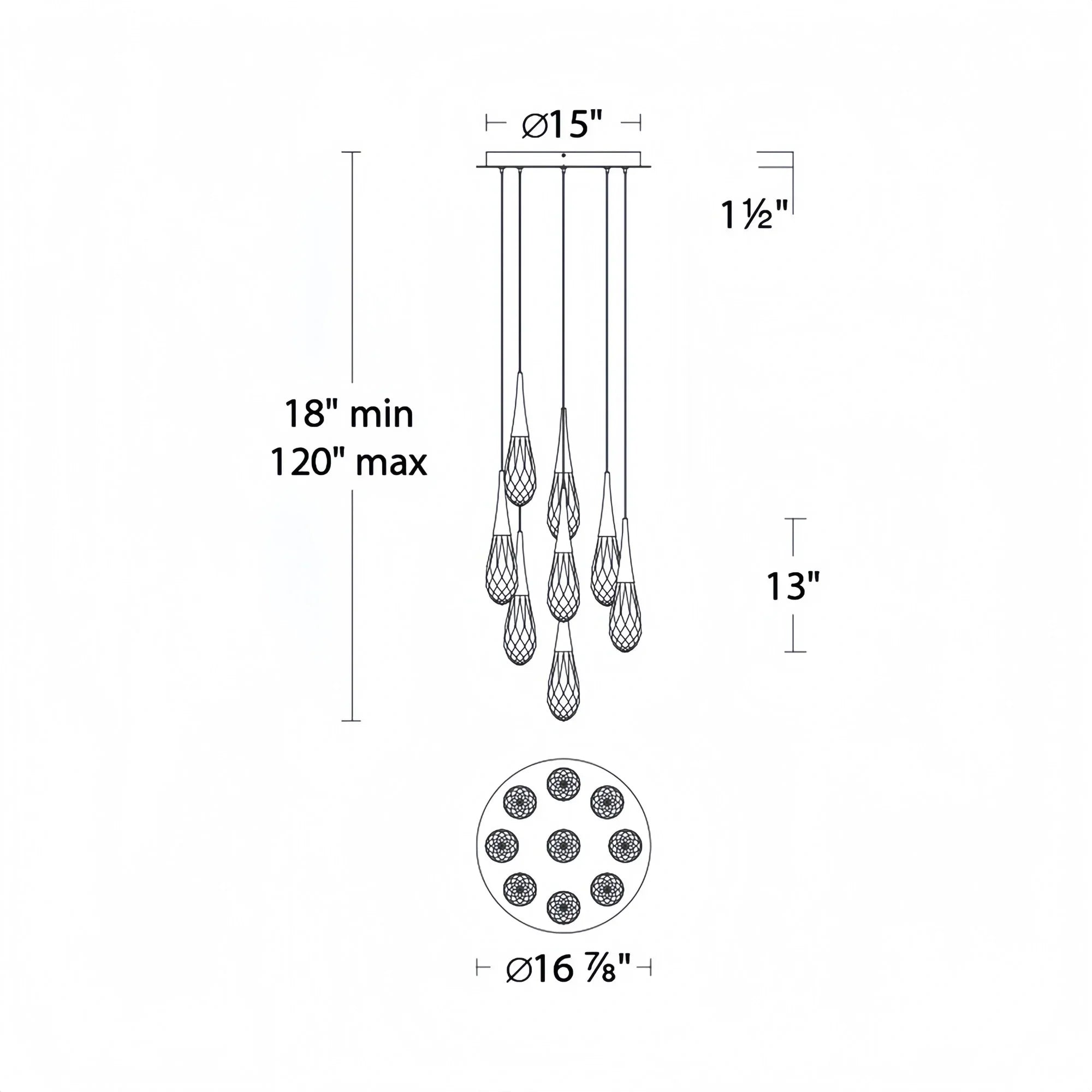 Create a dazzling dewy atmosphere with the elegant Hibiscus LED Multi Light Pendant Light from Arialamps. A series of raindrop-inspired globes drip onto the scene, providing an elegance like no other with their faceted crystal orbs and tapered metal frame, making this energy-efficient modern glam pendant light a stunning addition to welcoming foyers that set a lux tone.
