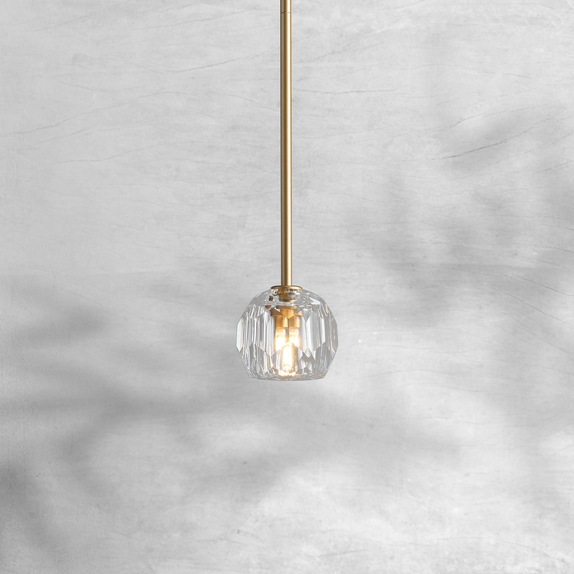 | The collection crafted of solid brass and crystal glass, for luxe materials and superior craftsmanship, each finely faceted sphere is ground and polished by hand to reflect and refract the light. |