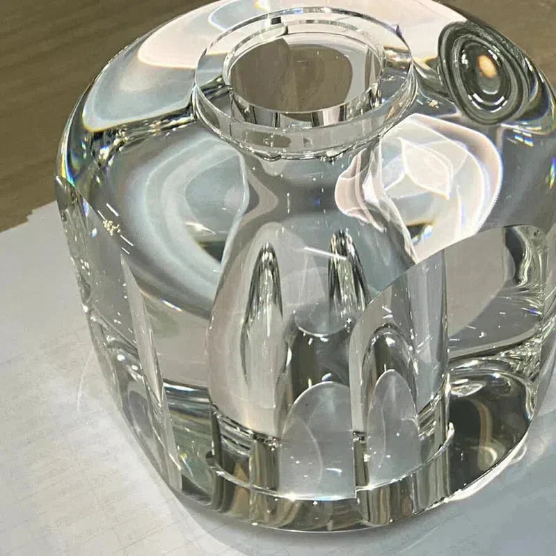 The Demaket Series embodies understated elegance with its unique dual-metal frame design. Its curved surfaces are crafted from K9 cast crystal, hand-polished to perfection, expertly reflecting and refracting light. The soft, rounded forms are cut into smooth, oval facets, offering clear sightlines through the crystal. Subtle detailing adds a touch of refinement, creating a serene and sophisticated atmosphere.