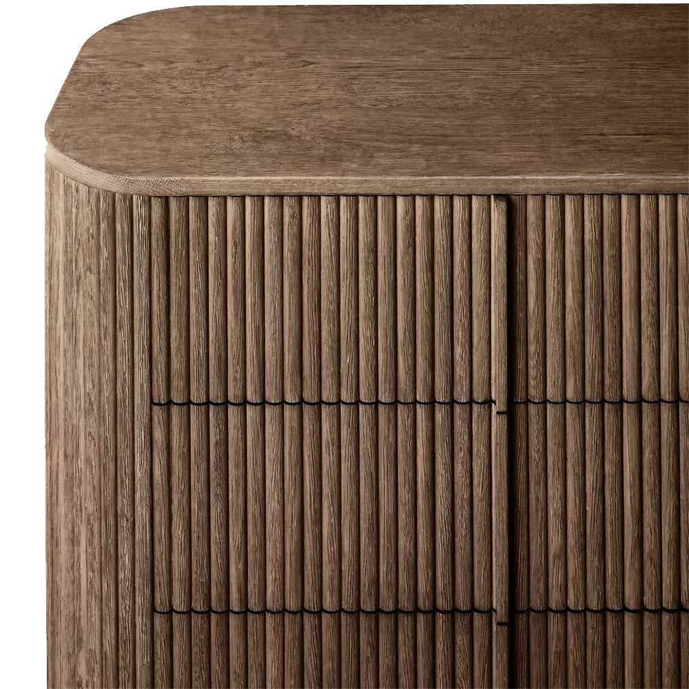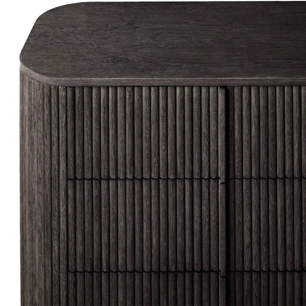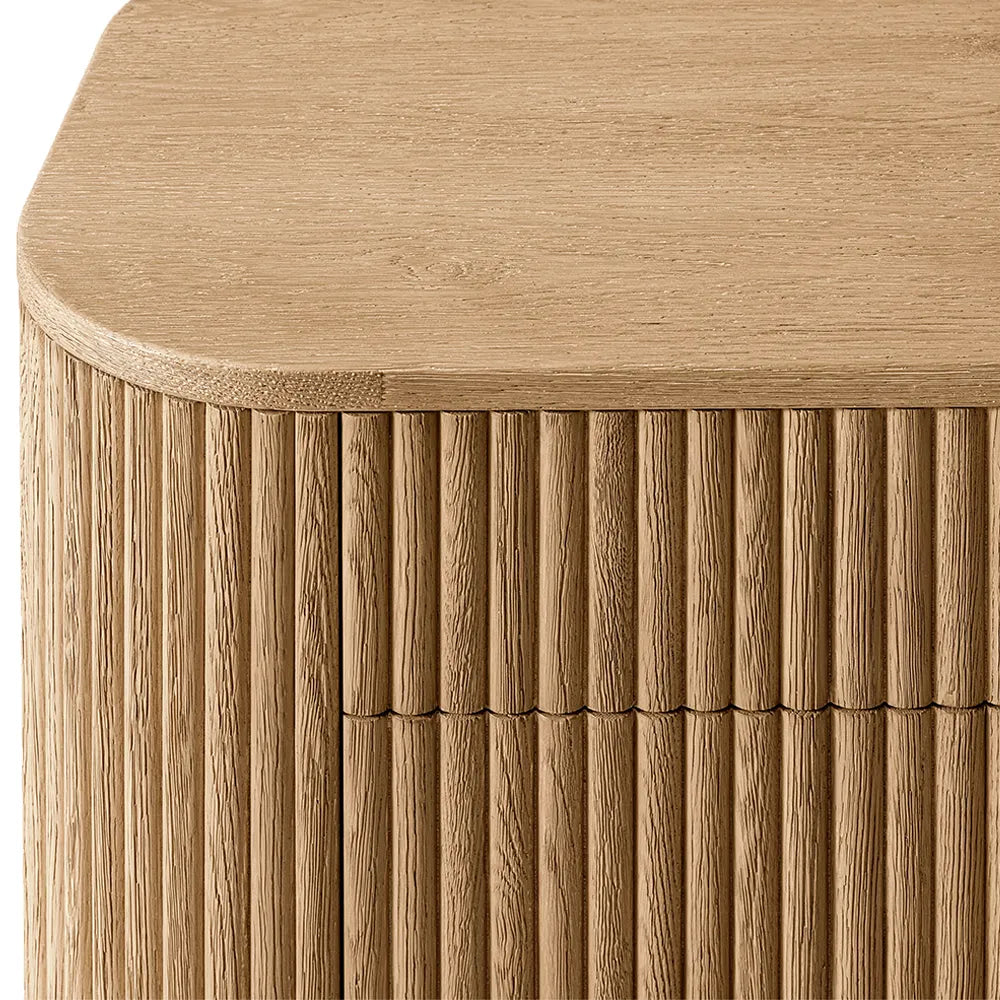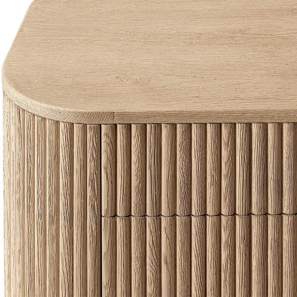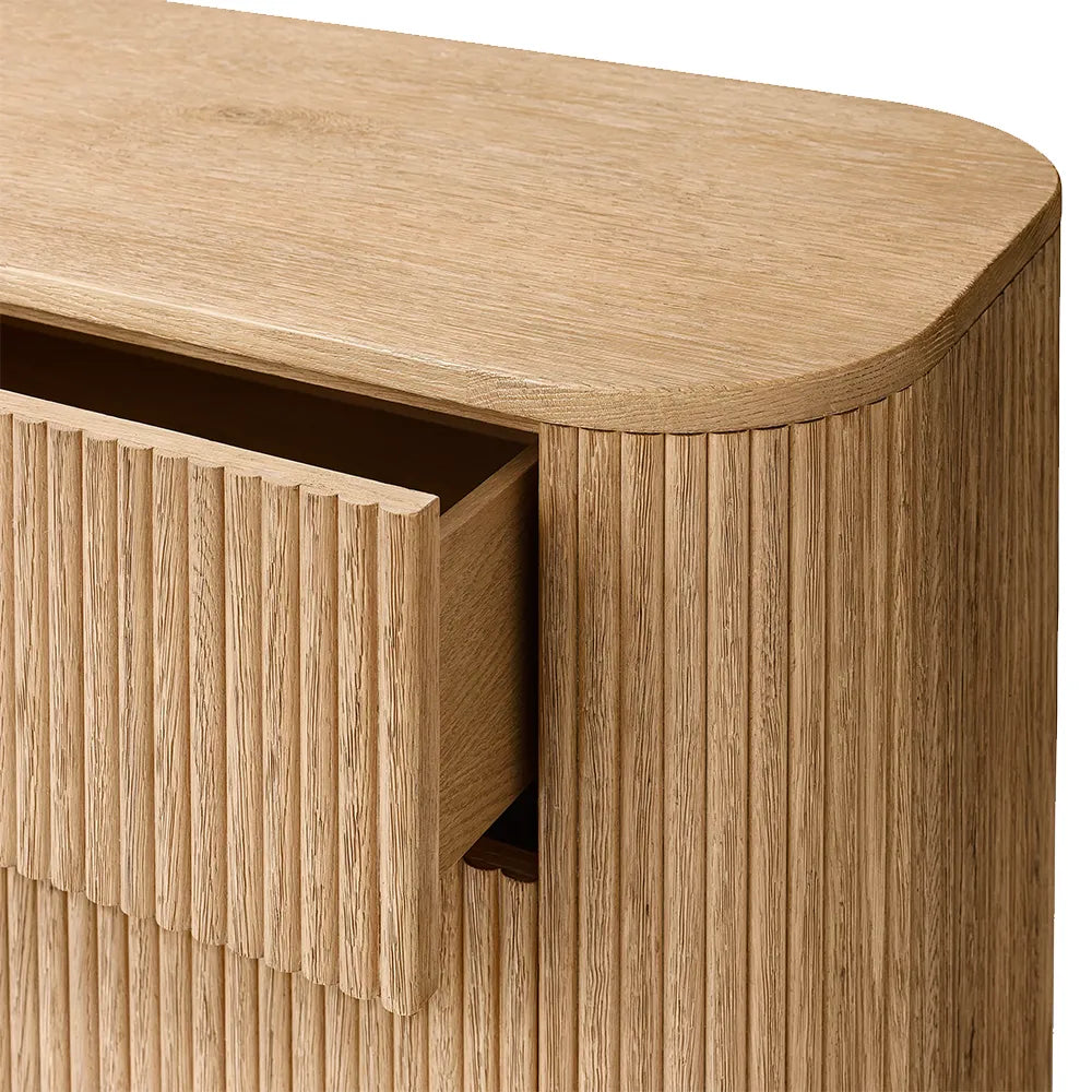 Vertical surfaces boast solid oak reeding, adding depth and texture to the piece.