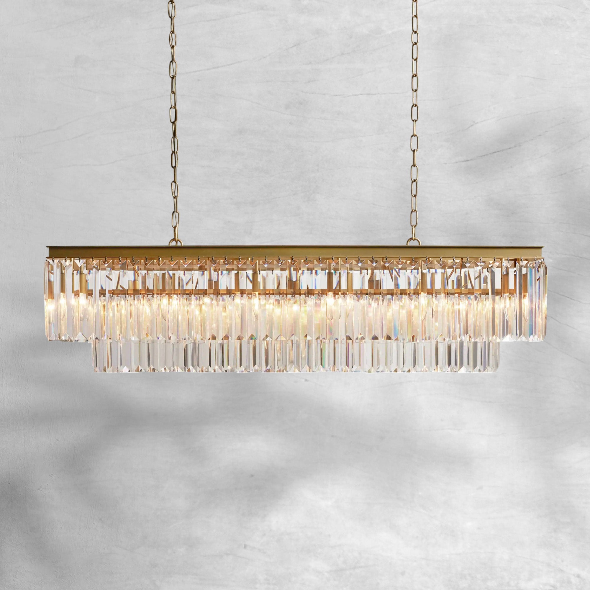 - French Art Deco style of the 1920s is reborn in our glamorous Leyland Lighting Collection, featuring layered row upon row of faceted glass crystals from a rustic iron frame.