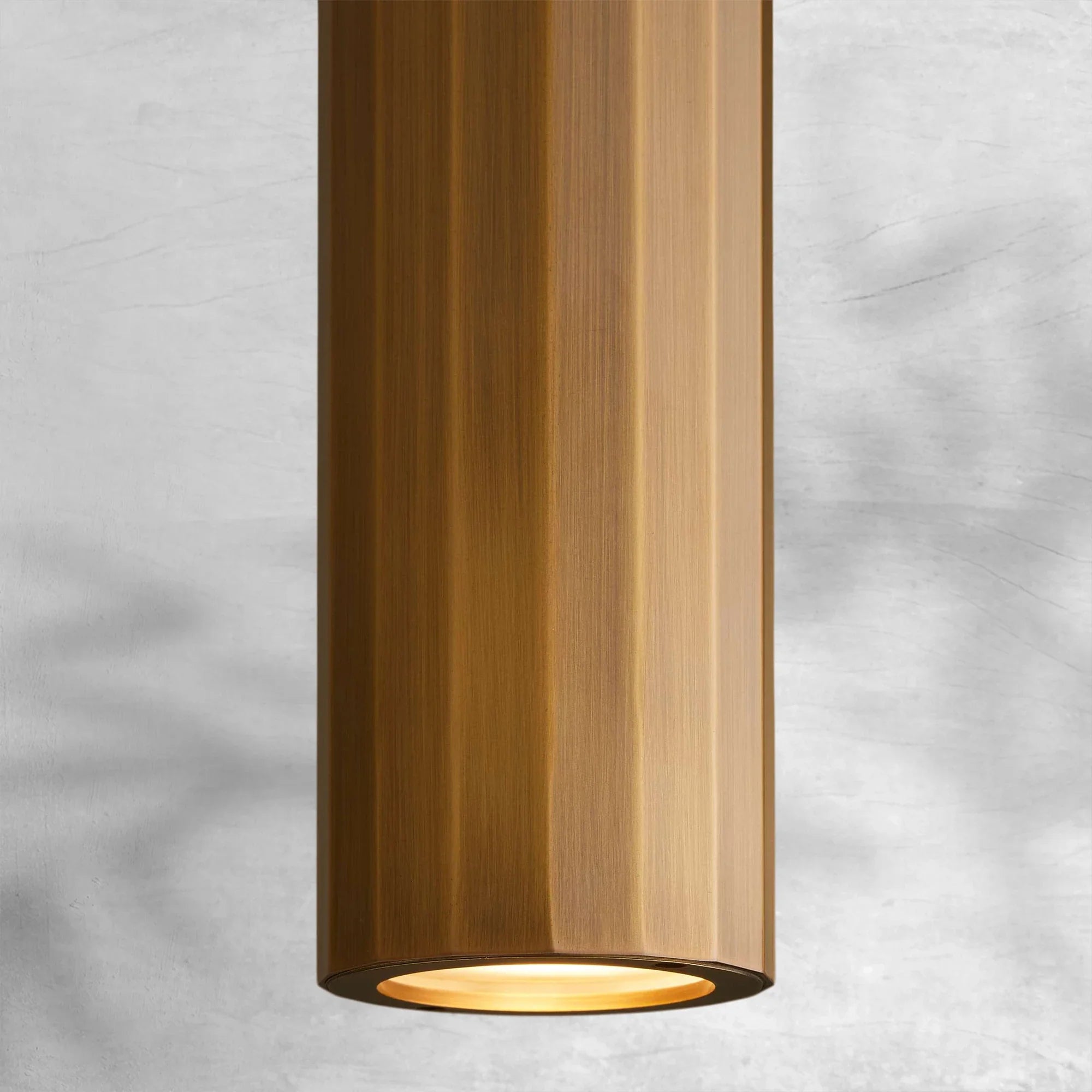 Our Matthie Collection features elongated, ribbed metal shades that descend from tonal adjustable cords; the textured surfaces catch the light with striking dimensionality to perfectly accent any space.