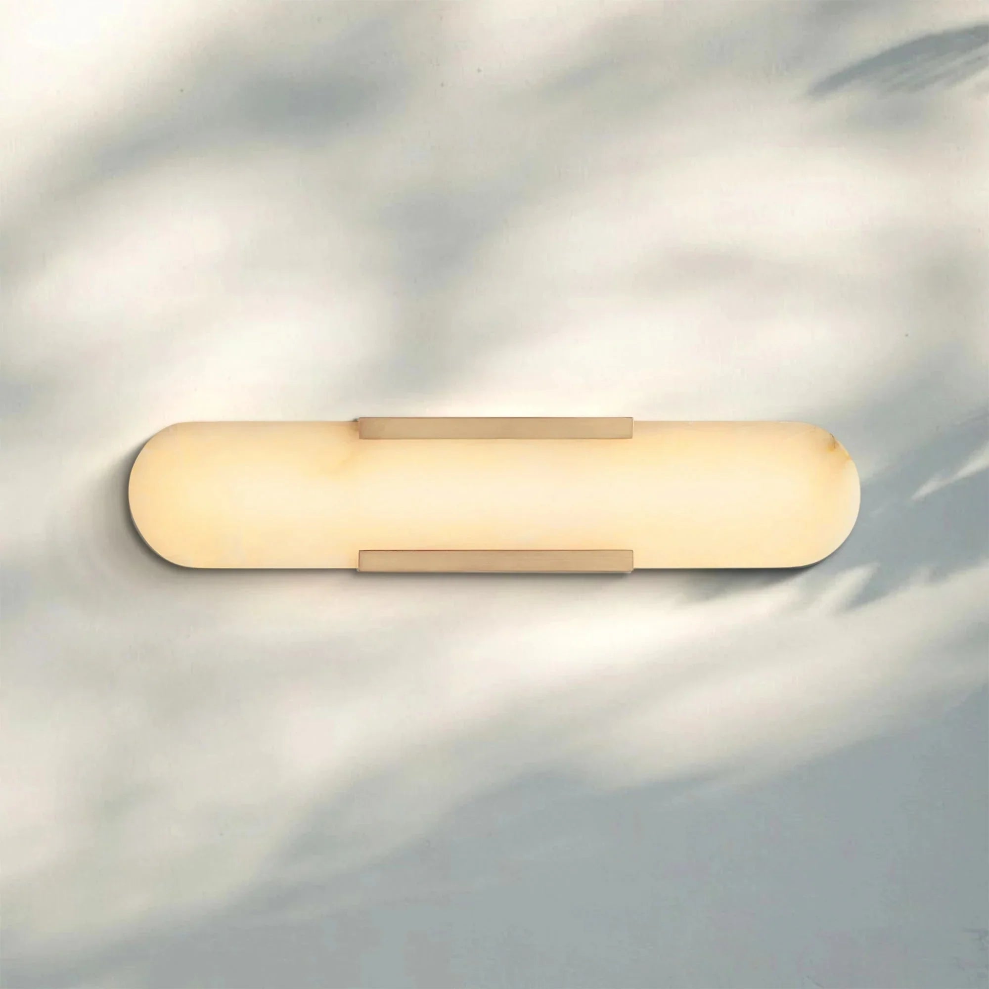The Melange Elongated 20 inch Wall Sconce brings an organic luxe to your interior space. The smooth metal frame softens minimalist surrounds, while the carved Alabaster casts a warm glow across your room. Alabaster contains unique variations in both veining and tone, offering a custom look to each piece.