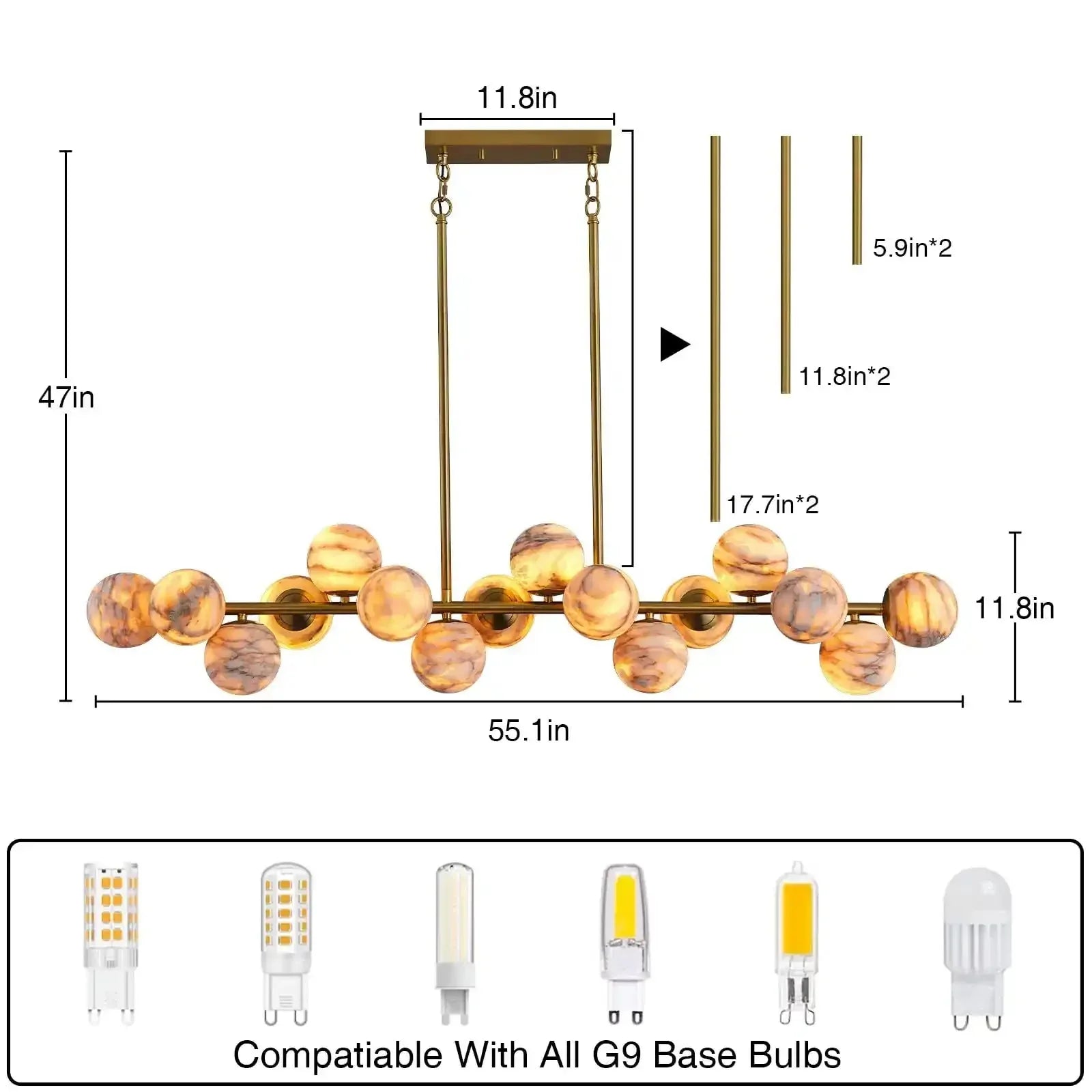 Customized service:You can easily customize the size, finish color, number of light sources, hanging wire&chain length, etc. Simplify the customization process and communicate directly with designers online.