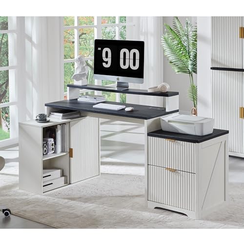 Modern 60" Executive Desk with Storage Cabinet and Drawer