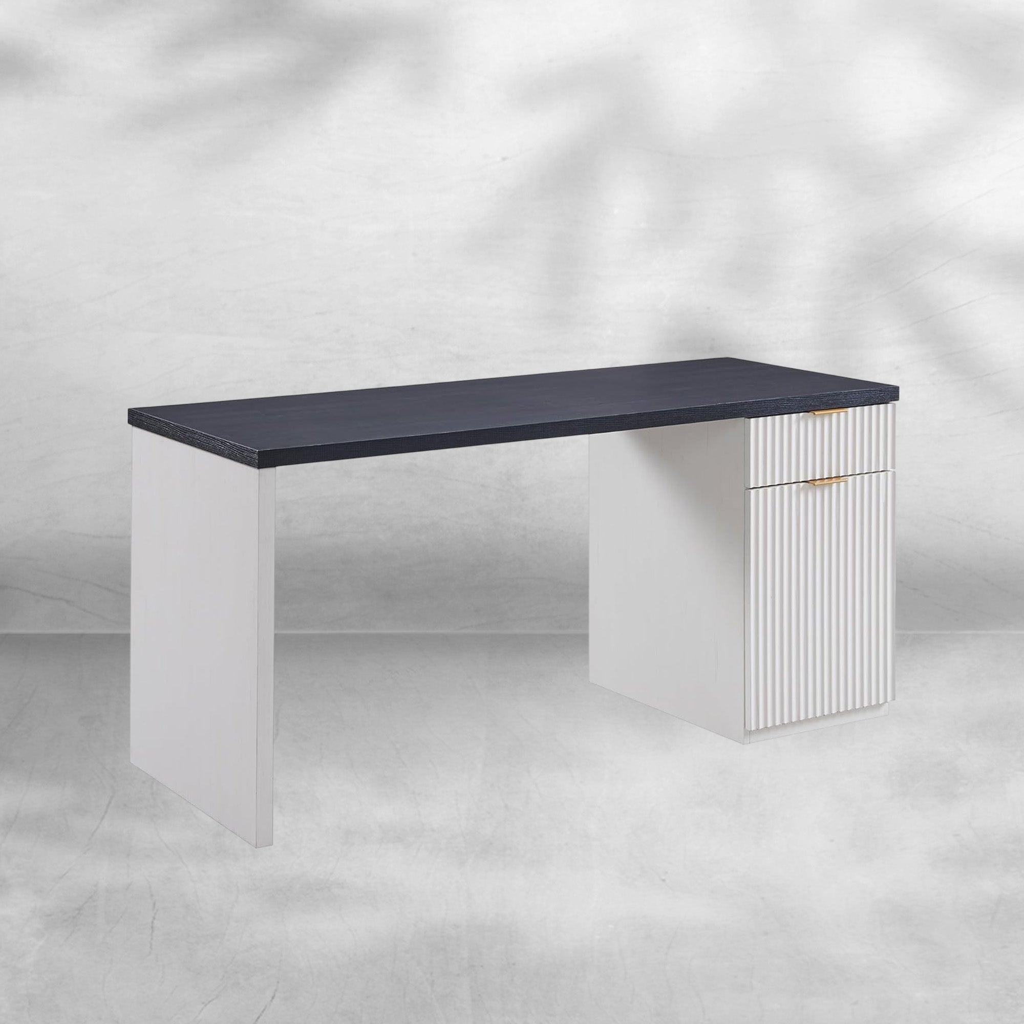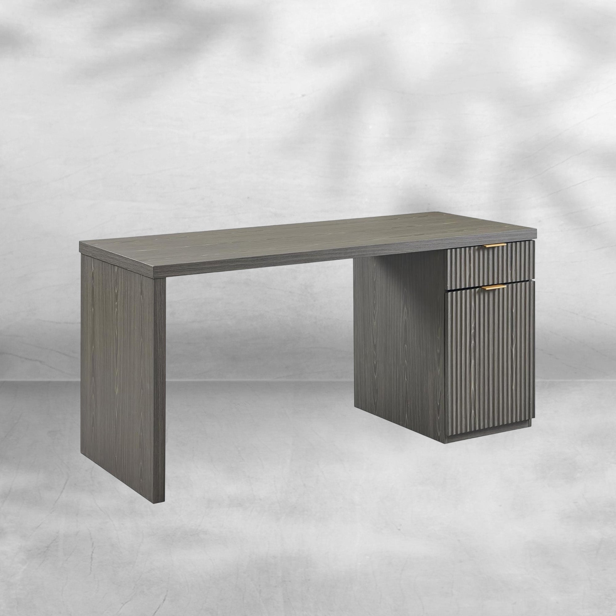 Upgrade your workspace with this modern executive desk! The fluted design adds a touch of elegance to any home office, living room, or bedroom. With a convenient drawer and storage cabinet, keeping your workspace tidy has never been easier as there's plenty of room for a computer, books, and office essentials. Get ready to boost your productivity in style!