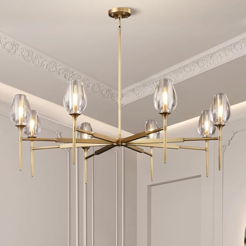 This 8‑light crystal chandelier adds a luxurious focal point to any dining area with its striking black rectangle design. The high‑quality K9 crystal shades and included E12 bulbs deliver brilliant, warm illumination while the sturdy aluminum frame ensures durability. Easy to install with adjustable hanging height, it fits both flat and vaulted ceilings.
