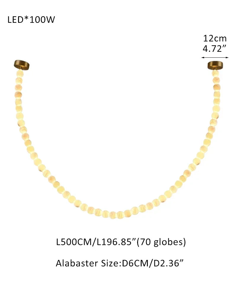 Natural stone, rotationally moulded for organic texture & soft glow. Seamless brass joints conceal energy-efficient, ambient lighting.Bend, stretch, or loop to create bespoke shapes effortlessly.Combine strands or hang solo/dual-ended for limitless layouts.A functional art piece for entryways, dining rooms, or statement walls.